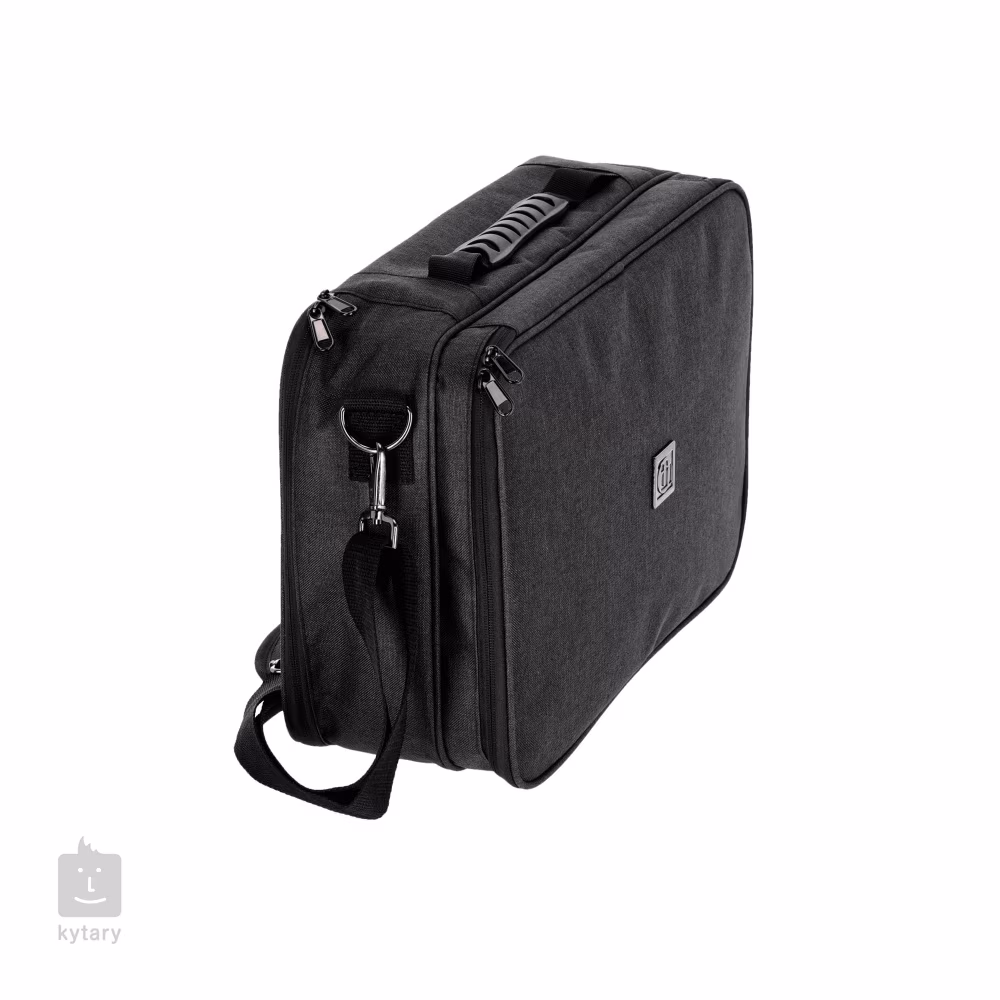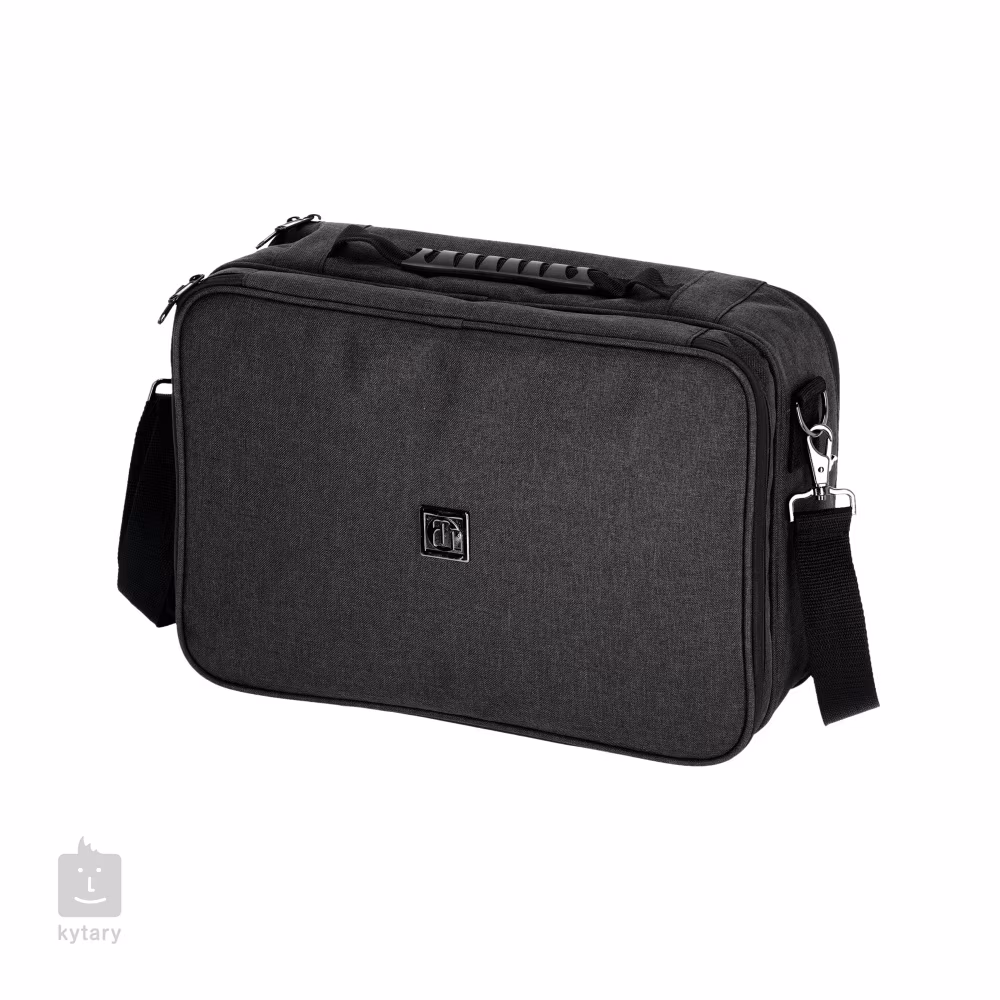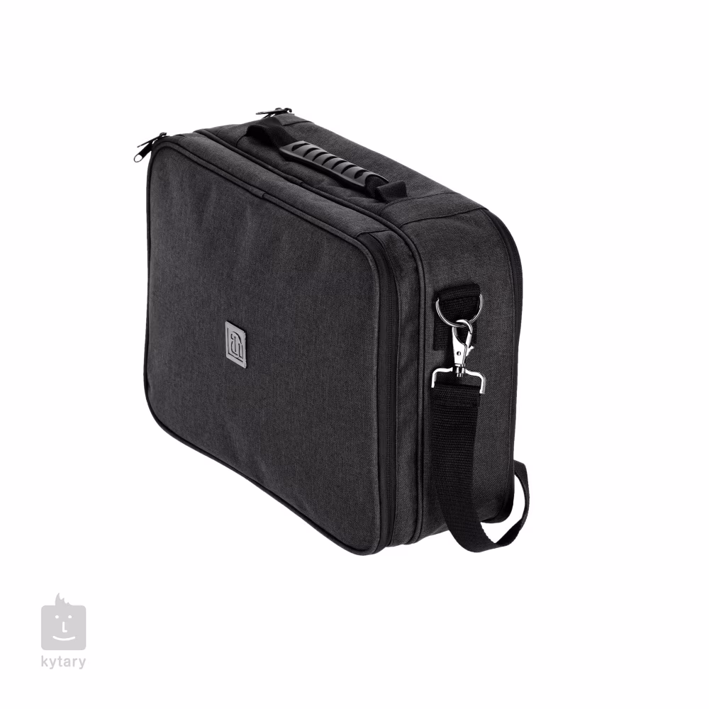 Mallette de transport adaptée aux câbles, microphones et autres petits accessoires. L'intérieur contient des poches et des compartiments spéciaux pour votre équipement. La poignée de forme ergonomique et la bandoulière assurent un transport confortable.