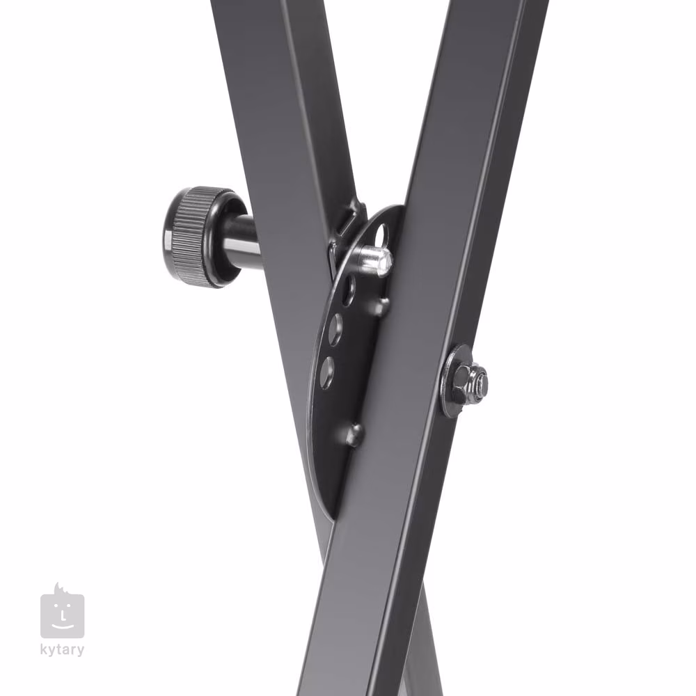 Adam Hall SKS 04 est un support en acier réglable en hauteur, en forme de "X". Le réglage en largeur détermine également la hauteur - la largeur minimale donne une hauteur de 980 millimètres, la hauteur maximale de 640 millimètres. Il existe cinq niveaux de réglage de la hauteur et de la largeur.