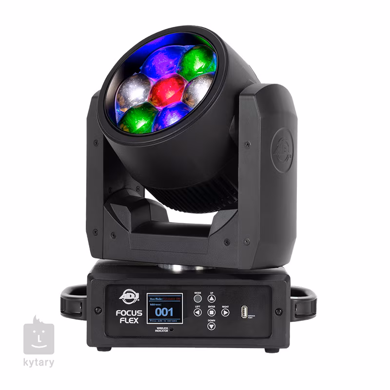 La tête pivotante compacte Focus Flex d'ADJ est un luminaire polyvalent qui permet de créer un éclairage wash diffus, des faisceaux nets et des effets de pixels. Elle est équipée d'un ensemble de sept LED RGBW de 40W qui peuvent être contrôlées indépendamment pour créer une variété de combinaisons de pixels avec différentes couleurs. L'appareil comprend également un zoom motorisé qui permet de modifier l'angle du faisceau de 4° à 31°, un gradateur avancé avec plusieurs modes et courbes de gradation, ainsi qu'un effet stroboscopique dont la vitesse est réglable.