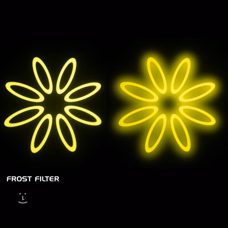 L'angle du faisceau peut être réglé de 7° à 45° à l'aide du zoom motorisé, ce qui permet d'obtenir à la fois un faisceau net et un éclairage doux et diffus. Grâce à la mise au point motorisée, vous pouvez ajuster la netteté de l'effet d'éclairage en fonction de l'angle du faisceau. Un filtre frost, quant à lui, permet de diffuser et d'adoucir la lumière de lavage. L'appareil comprend également un système de cadrage rotatif à quatre cadres qui vous permet de recadrer la lumière des quatre côtés pour créer un faisceau de différentes formes.