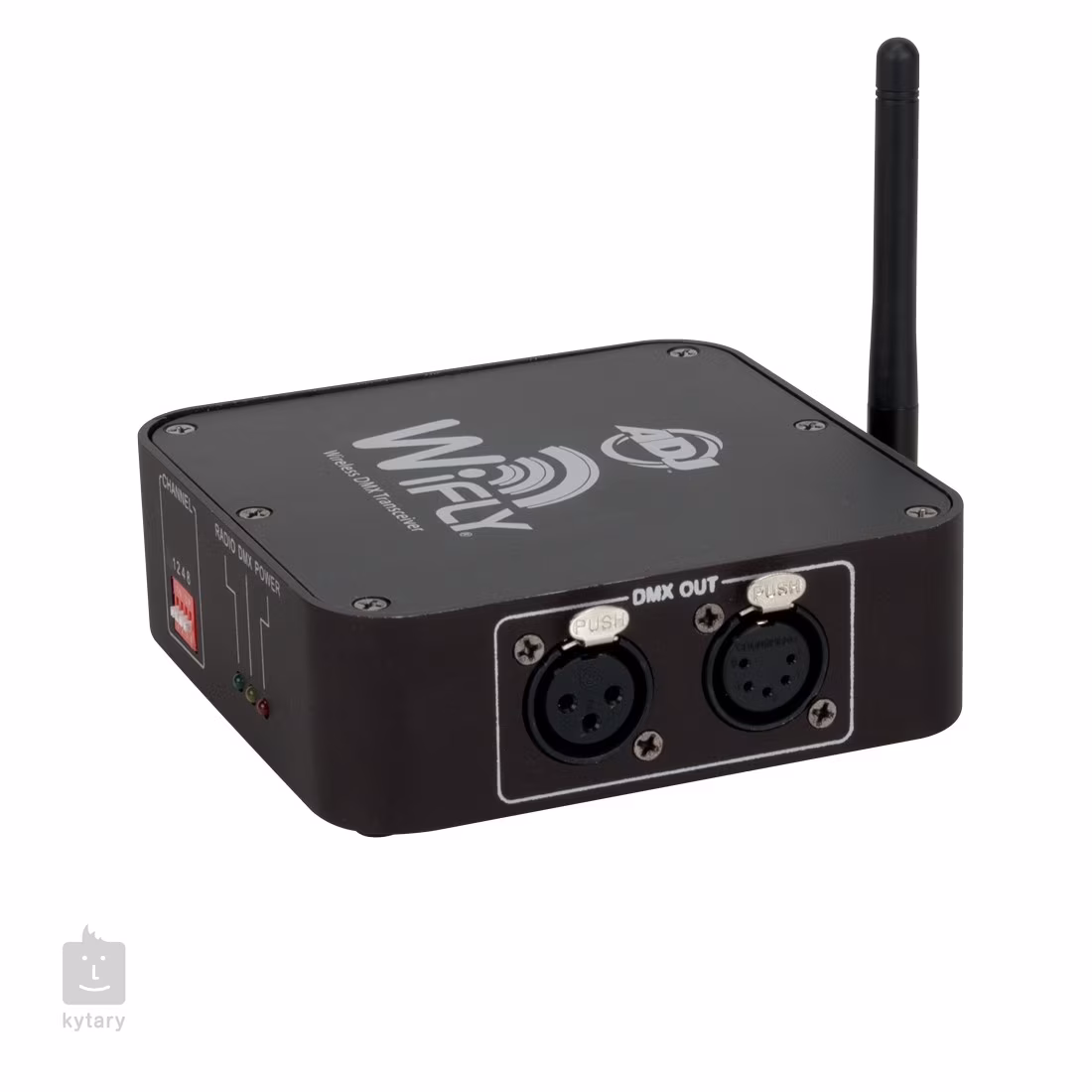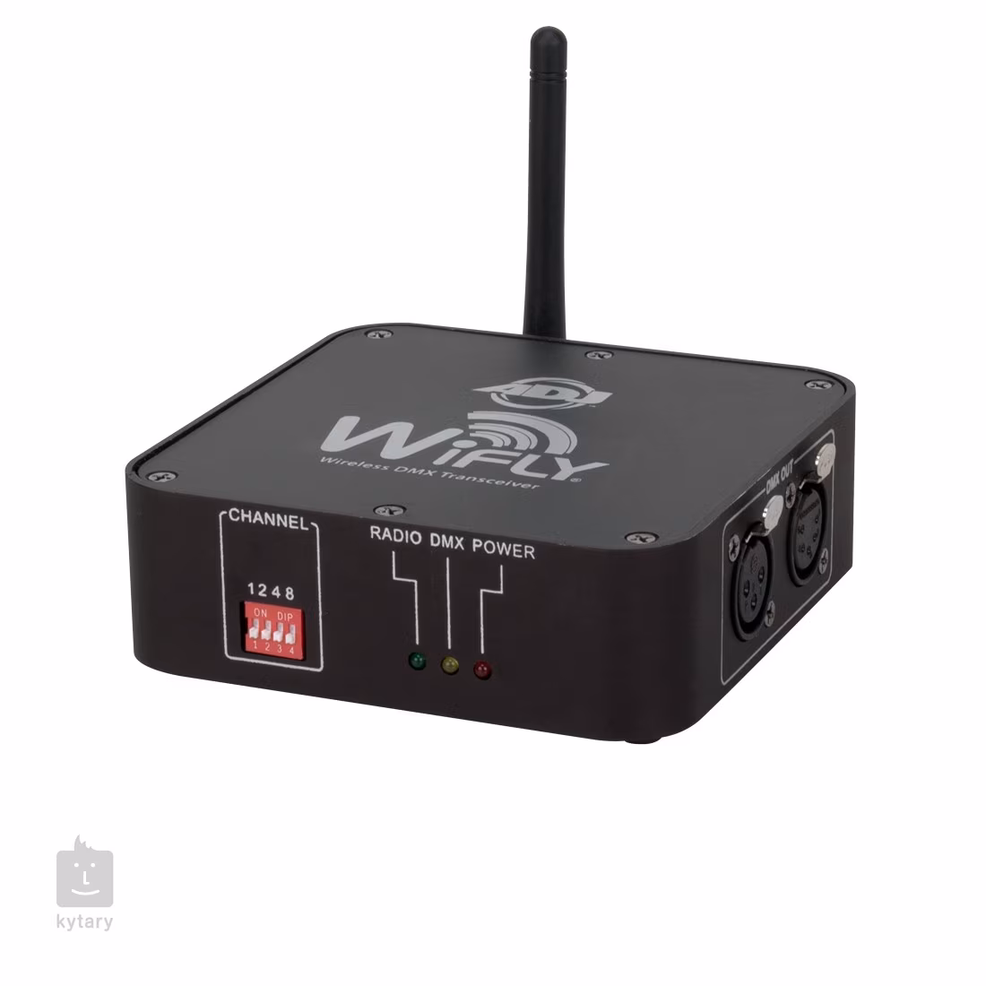 The ADJ WiFLY Transceiver is the ideal solution for DJs, nightclubs, bars or for any event where you do not want data cables to be seen, and when it is not easy to run data cables to your fixture(s) location.