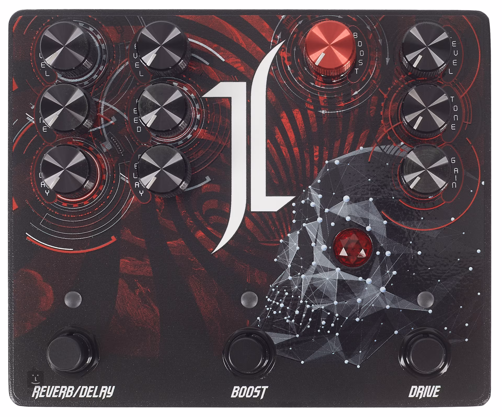Allpedals Devil's Triad est une pédale d'effet complète créée en collaboration avec Jeff Loomis (Jeff Loomis, Conquering Dystopia, ex-Nevermore) comme sa solution tout-en-un pour les concerts et le travail en studio. Il s'agit d'une pédale d'overdrive/distorsion avec des sections d'effet booster et réverbération/délai séparées, offrant un large éventail d'options de routage du signal, c'est-à-dire deux câbles classiques, deux câbles avec sortie vers le retour de la boucle d'effets de l'instrument (Devil's Triad comme préampli), quatre câbles avec deux chemins de signal (sortie vers deux instruments différents) ou quatre câbles avec entrée/sortie mono et boucle d'effets.