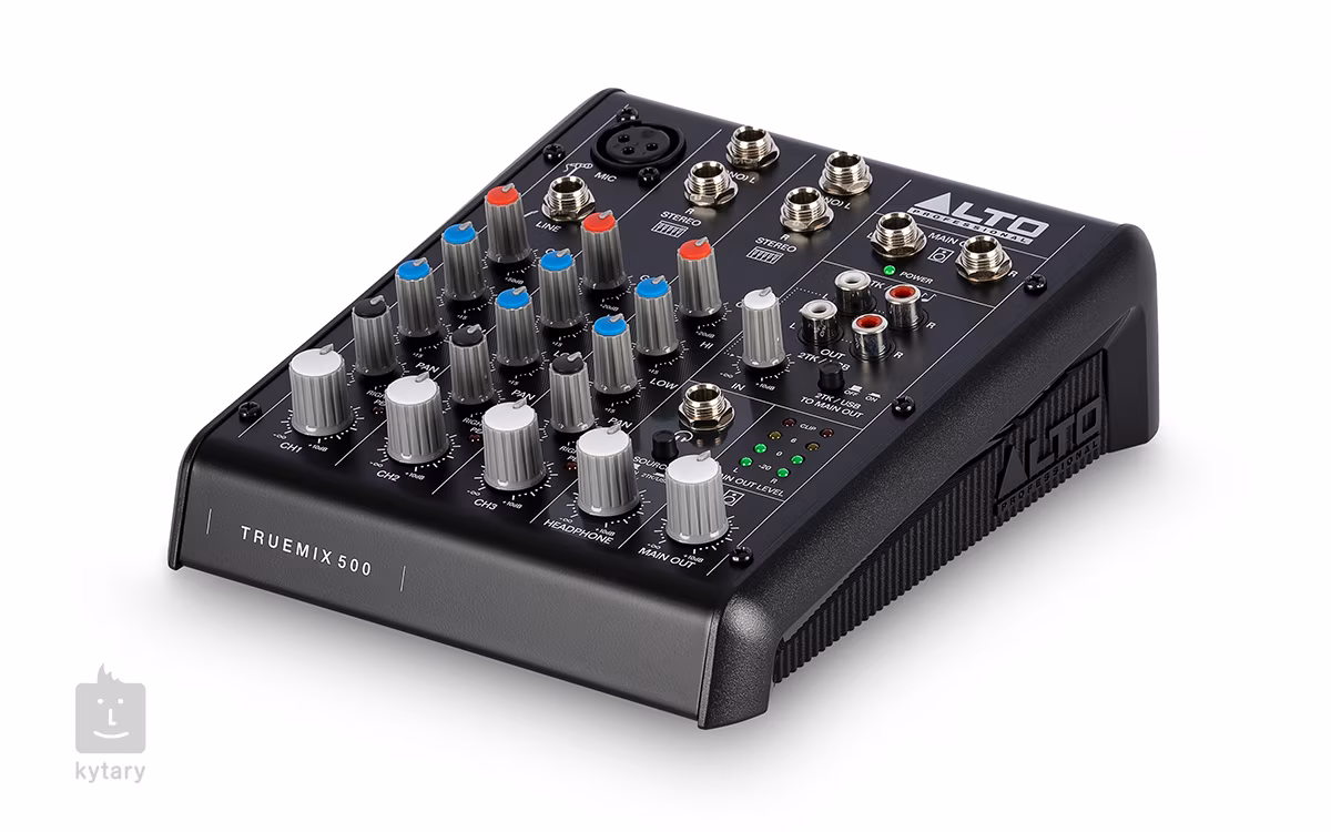 L'Alto TrueMix 500 est une console de mixage analogique à cinq canaux avec E/S USB, cinq entrées, une entrée ligne avec alimentation fantôme 18V, et des commandes claires qui vous permettent de contrôler totalement le son des instruments et des voix dans des environnements plus intimes. Chacun des cinq canaux dispose d'un égaliseur à deux bandes et de commandes de gain et de panoramique. Les sorties Main, Headphone et Tape permettent de régler le volume en fonction des spécificités de l'appareil utilisé. Si l'on ajoute à cela la taille compacte et la construction durable de la table de mixage, il n'y a aucune raison de ne pas avoir la TrueMix 500 en permanence à portée de main, comme un compagnon pour toutes les occasions.