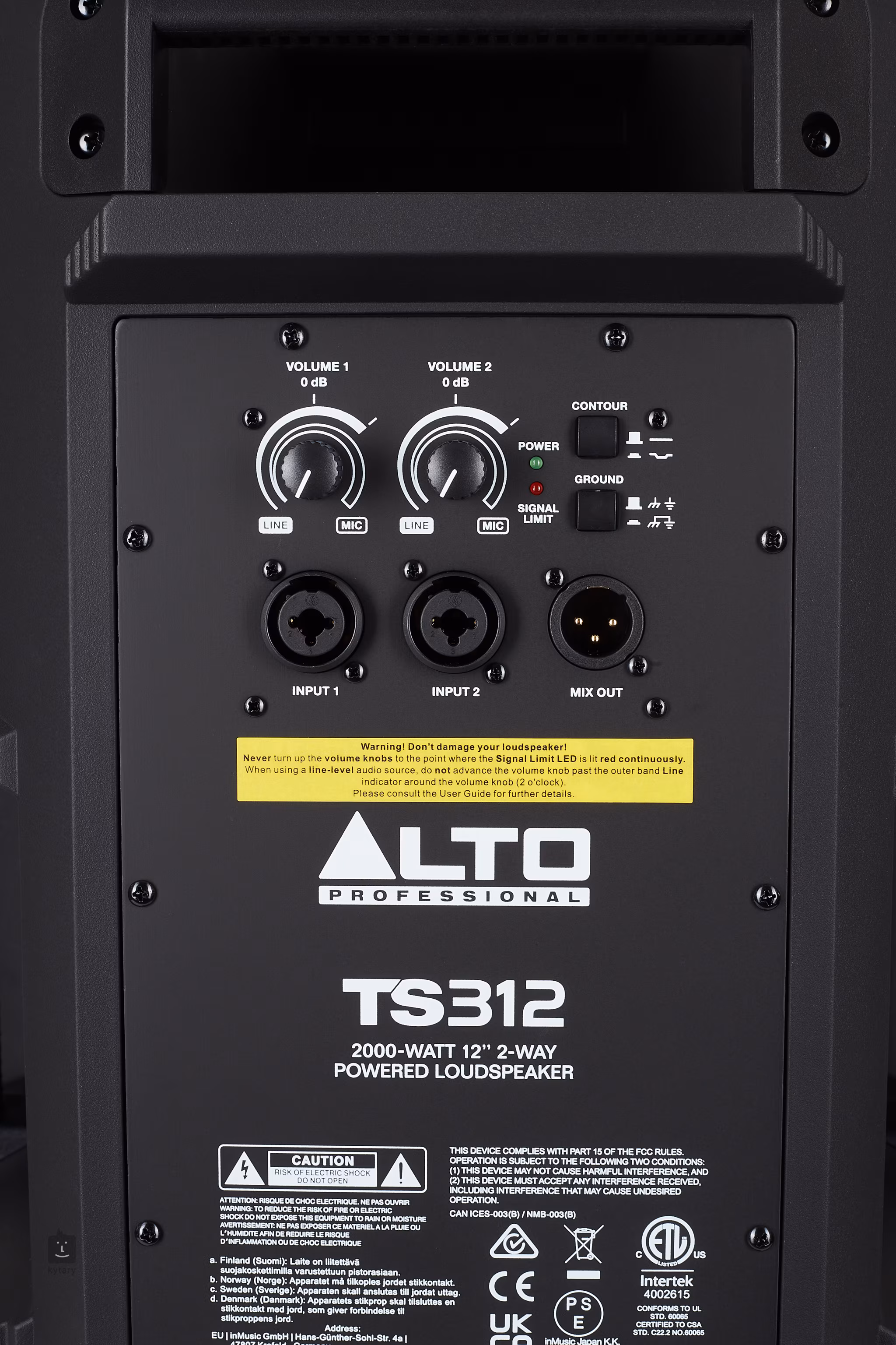Le TS312 cache un woofer de 12 pouces et un tweeter de 1,4 pouce sous une grille robuste, qui, associés à un amplificateur de classe D haute performance, vous offriront jusqu'à 1000W de puissance. L'arrière comporte deux prises d'entrée combinées XLR/Jack et une sortie XLR pour la connexion d'un PA supplémentaire. Chaque canal comprend une commande de volume séparée pour un réglage détaillé du volume, et vous pouvez encore ajuster le signal d'entrée via les commutateurs Ground-Lift et Contour EQ. Vous pouvez placer le TS312 sur un pied d'enceinte, le suspendre à un mur ou utiliser le design biseauté pour le positionner comme un moniteur d'écoute. Les poignées latérales robustes permettent ensuite un transport pratique entre les productions.
