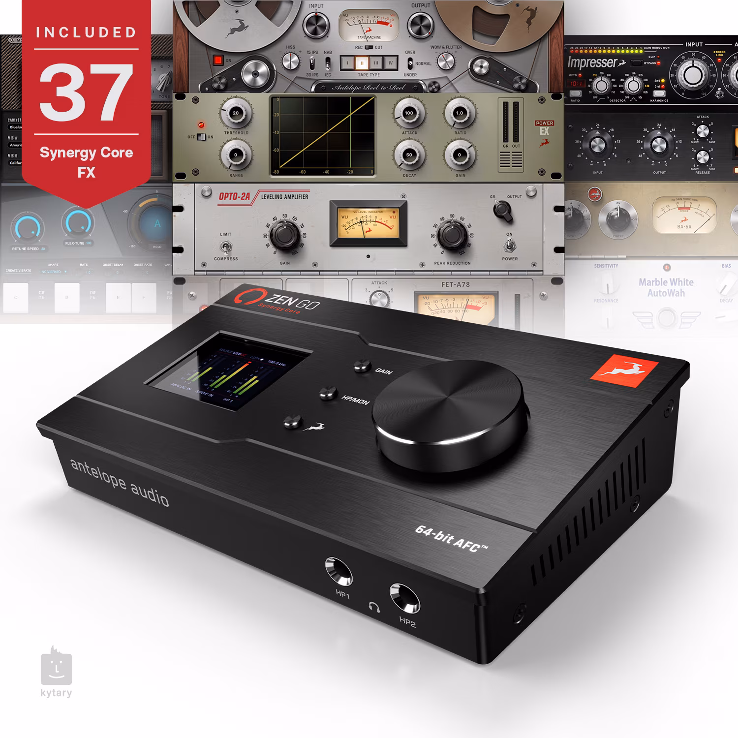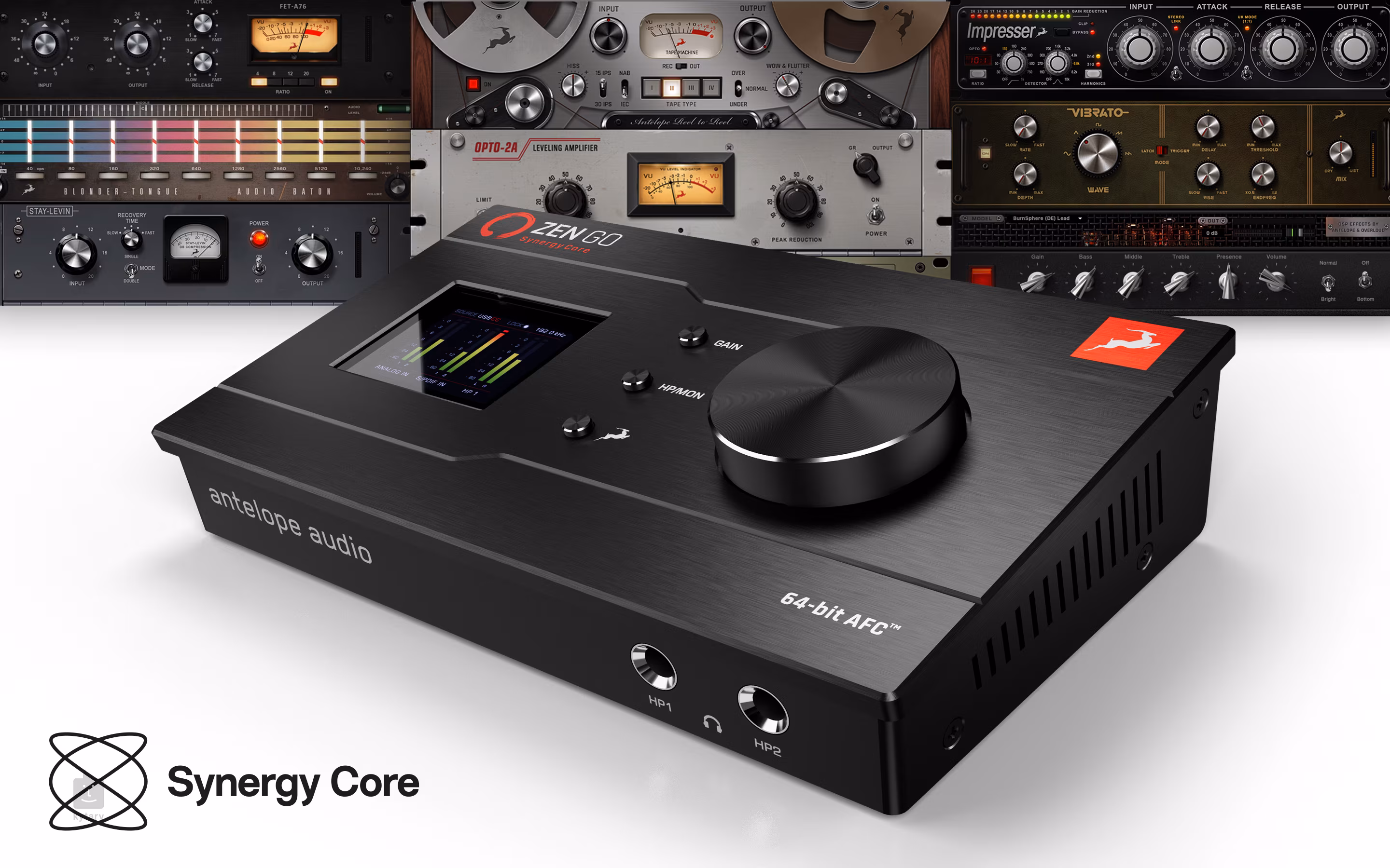 Zen Go Synergy Core est une petite interface de bureau portable qui permet aux artistes créatifs de créer depuis pratiquement n'importe où en utilisant des technologies utilisées et appréciées par les producteurs de classe mondiale. La qualité sonore et les capacités de traitement de cet appareil sont inégalées dans sa catégorie grâce à la célèbre technologie d'horloge 64 bits d'AFC™ Antelope Audio et à la puissante plateforme intégrée Synergy Core, chargée d'effets.