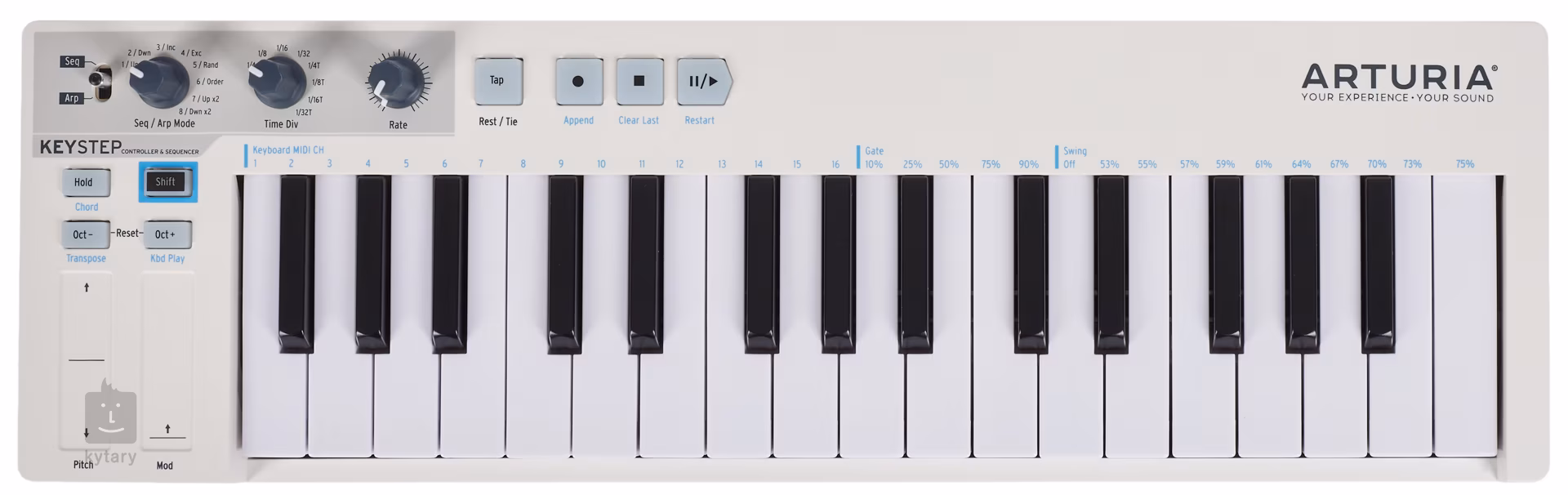 Arturia présente le Keystep, un contrôleur MIDI compact qui, avec sa connectivité étendue et ses fonctions avancées, aspire a devenir le centre de contrôle de tous vos équipements analogiques et logiciels. De plus, il possede un séquenceur intégré, un arpégiateur et des touches qui sont un plaisir a jouer.