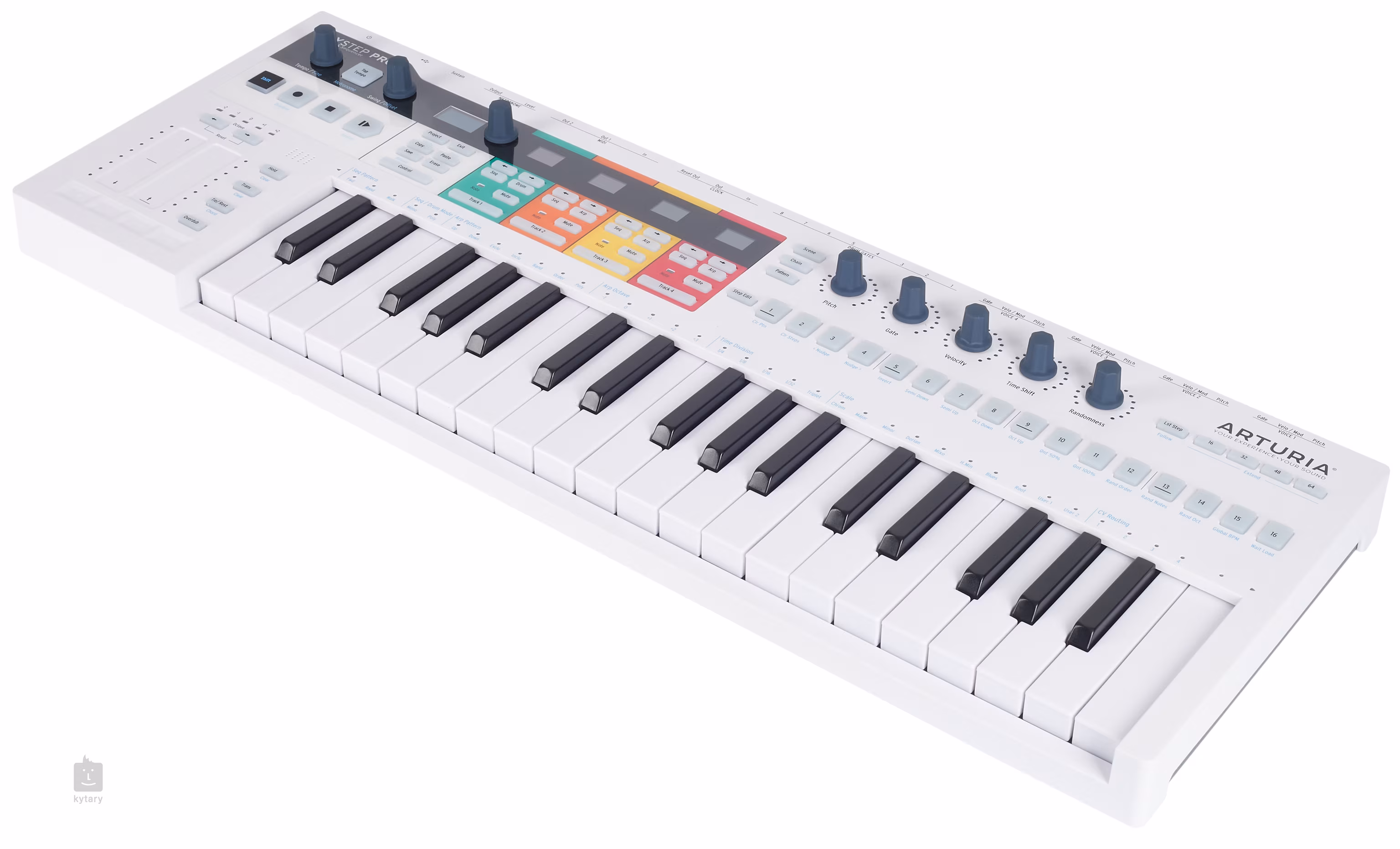 De nombreux joueurs apprécieront le séquenceur et l'arpégiateur intégrés. En mode séquenceur, vous disposez d'un maximum de 64 pas avec polyphonie, ce qui vous permet d'utiliser un total de 16 notes pour chaque pas. Vous pouvez modifier les séquences en temps réel, et si vous souhaitez jouer et séquencer en meme temps, vous disposez de deux canaux MIDI distincts. Arpegiattor propose 7 modes de décomposition et de rythme différents, ce qui vous permet de créer rapidement tout ce que vous voulez, des mélodies simples aux structures totalement désordonnées. Une section a code couleur pour le contrôle des quatre pistes facilitera grandement le travail avec les pistes individuelles. Chaque section est dotée d'un affichage a deux chiffres et d'un panneau de commande pour les réglages les plus optimaux.