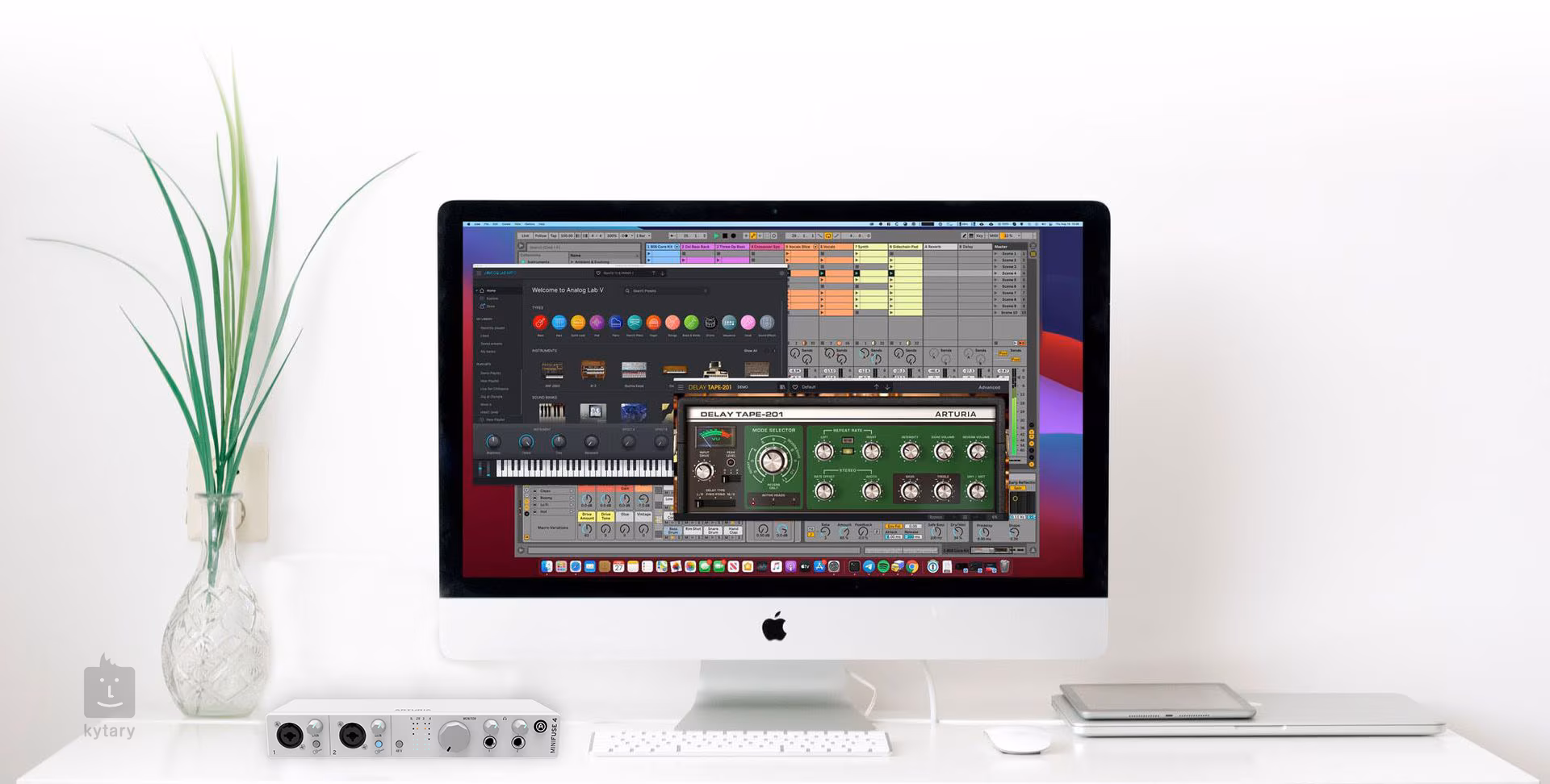 L'appareil est également livré avec un logiciel de pointe qui vous offre tout ce dont vous avez besoin pour une production professionnelle : Ableton Live Lite, Analog Lab Intro avec des sons inspirants, l'ensemble d'effets Arturia FX, Native Instruments Guitar Rig pour les guitaristes, Auto-Tune Unlimited pendant 3 mois et Splice Creator Plan avec accès à des millions d'échantillons libres de droits.