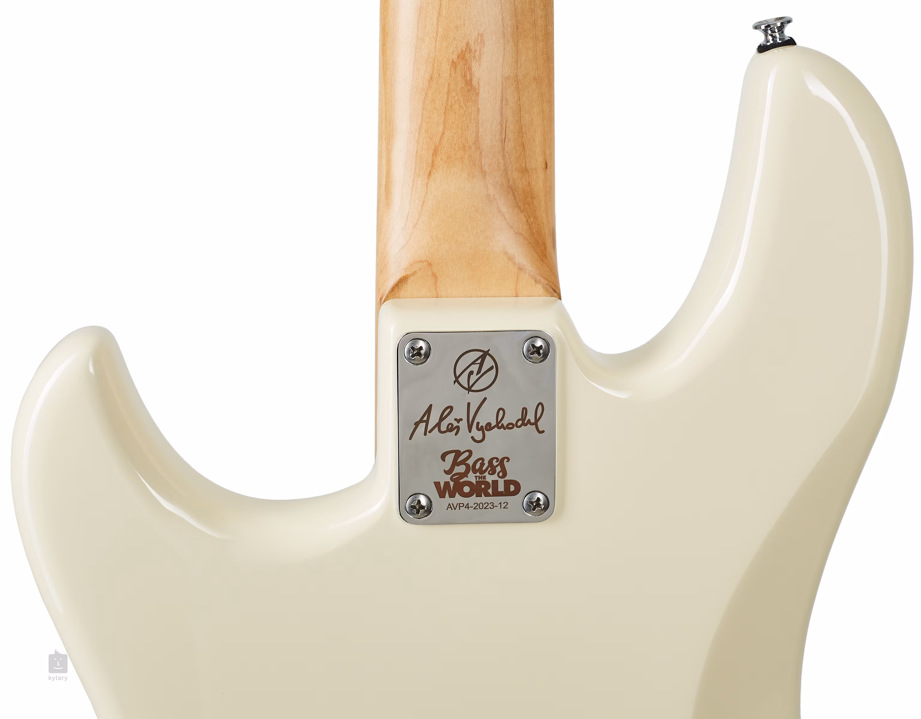 Cette luxueuse guitare basse provient de l'atelier du fabricant tchèque de guitares et de basses Ales Vychodil. Ses instruments jouissent déjà d'une réputation mondiale et parmi ses clients, on trouve des musiciens professionnels qui accompagnent des artistes internationaux tels que Jamiroquai, Annie Lenox, Robbie Williams, The Corrs, Duffy ou Boyzone.