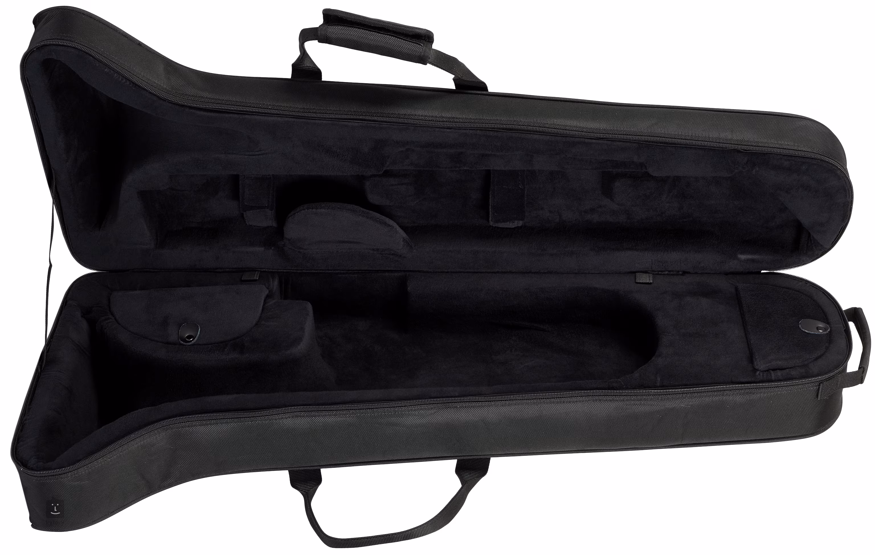 L'étui à bastrombone BBTC165 de Bacio offre une construction solide et durable avec un compartiment interne moulé pour un rangement sécurisé de l'étui, une poche externe pour le rangement de petits accessoires, une double poignée pour une manipulation aisée de l'étui et des bandoulières.