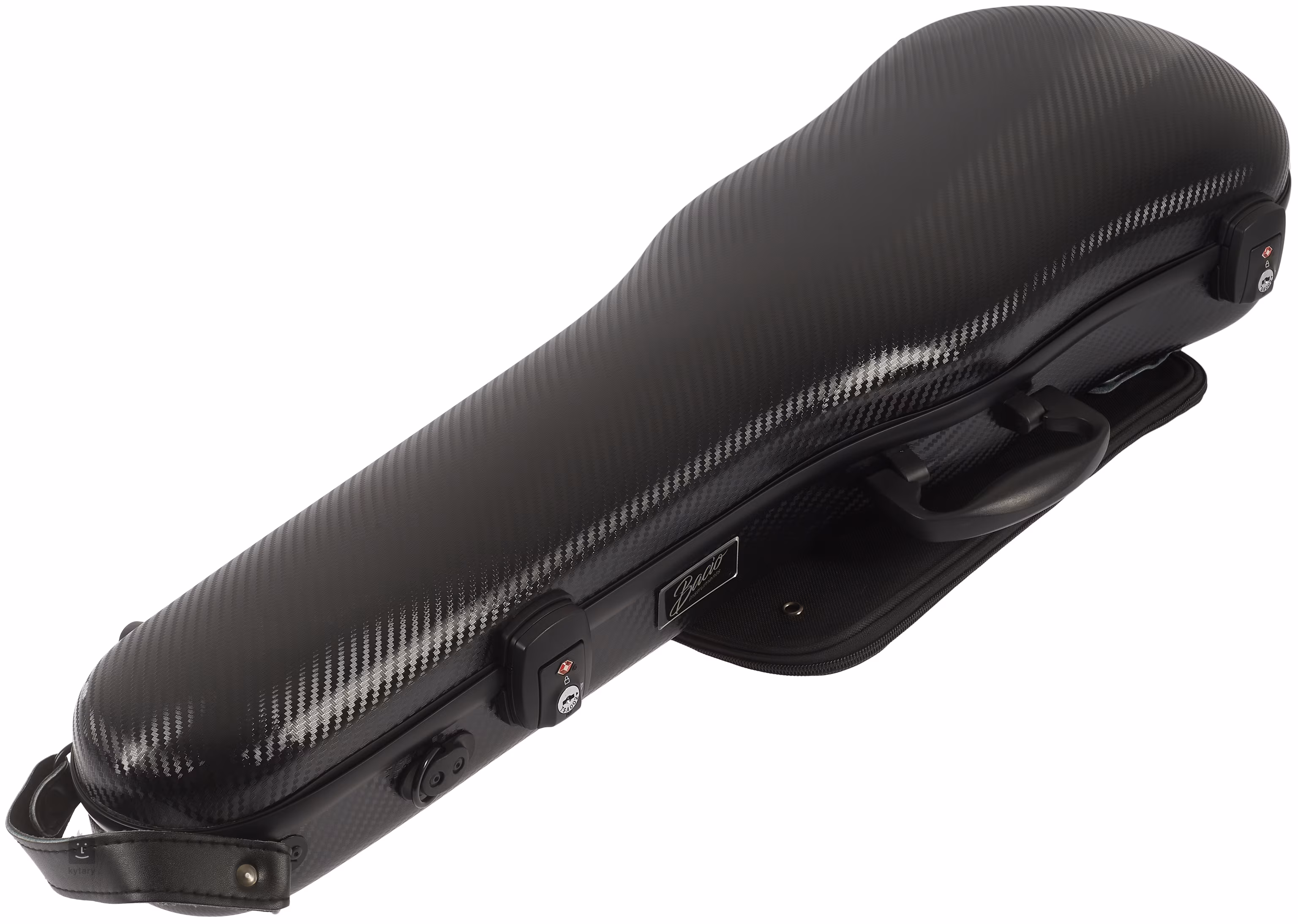 Étui à violon en composite de carbone avec deux serrures et déverrouillage par code/mot de passe, pochette à musique amovible, poignées sur les côtés et sur le dessus, deux bandoulières et deux porte-archets.