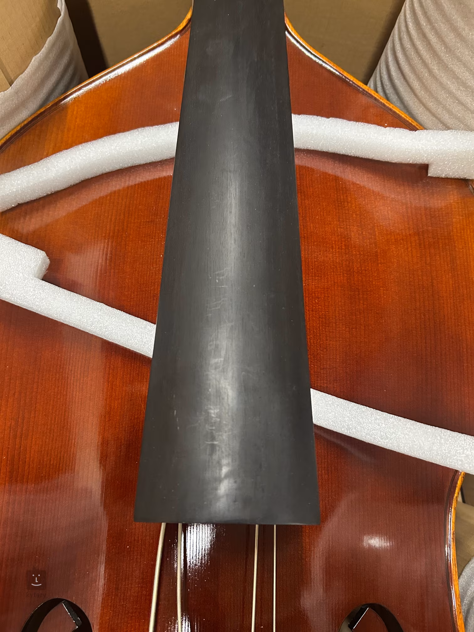 Cette contrebasse de Bacio Instruments plaira certainement aux joueurs les plus expérimentés à la recherche d'un instrument de qualité à un prix abordable. La table de cet instrument fabriqué à la main est traditionnellement faite de bois d'épicéa sélectionné, tandis que le dos et les éclisses sont en érable. La table d'harmonie et la touche sont en ébène, et l'instrument est fini avec un vernis à l'alcool appliqué à la main. La touche est en métal.