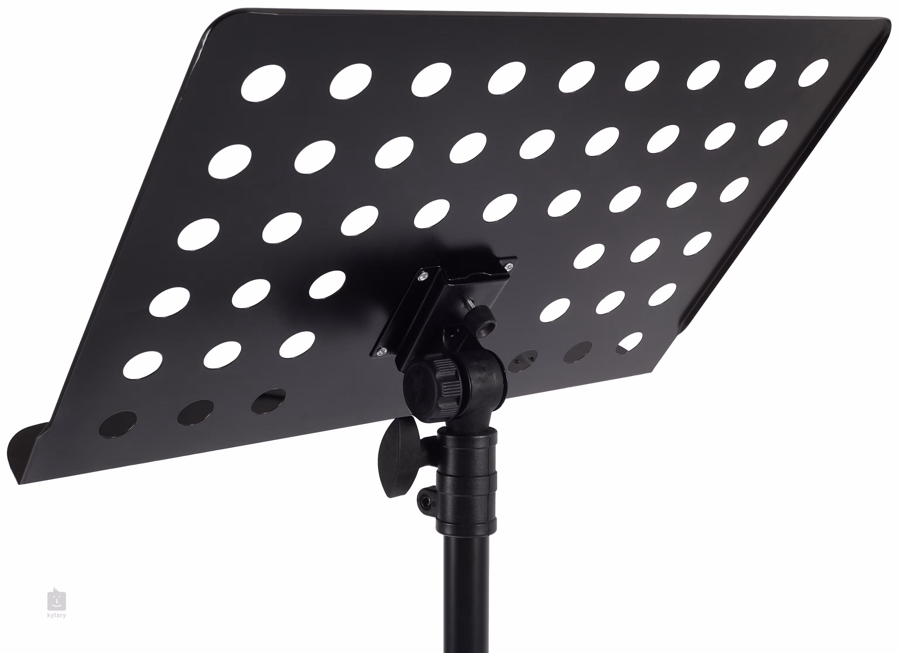 Le Bacio MS-15 est un pupitre en métal doté d'une base trépied robuste, d'une hauteur réglable (800 - 1500 mm) et d'un pupitre solide perforé qui peut être séparé du pupitre.