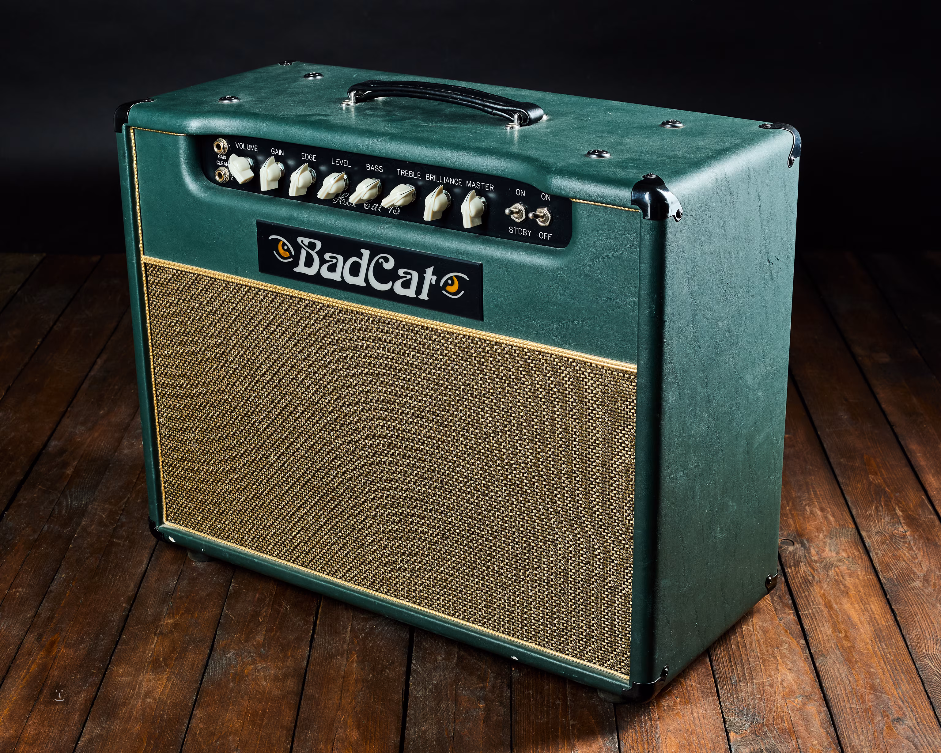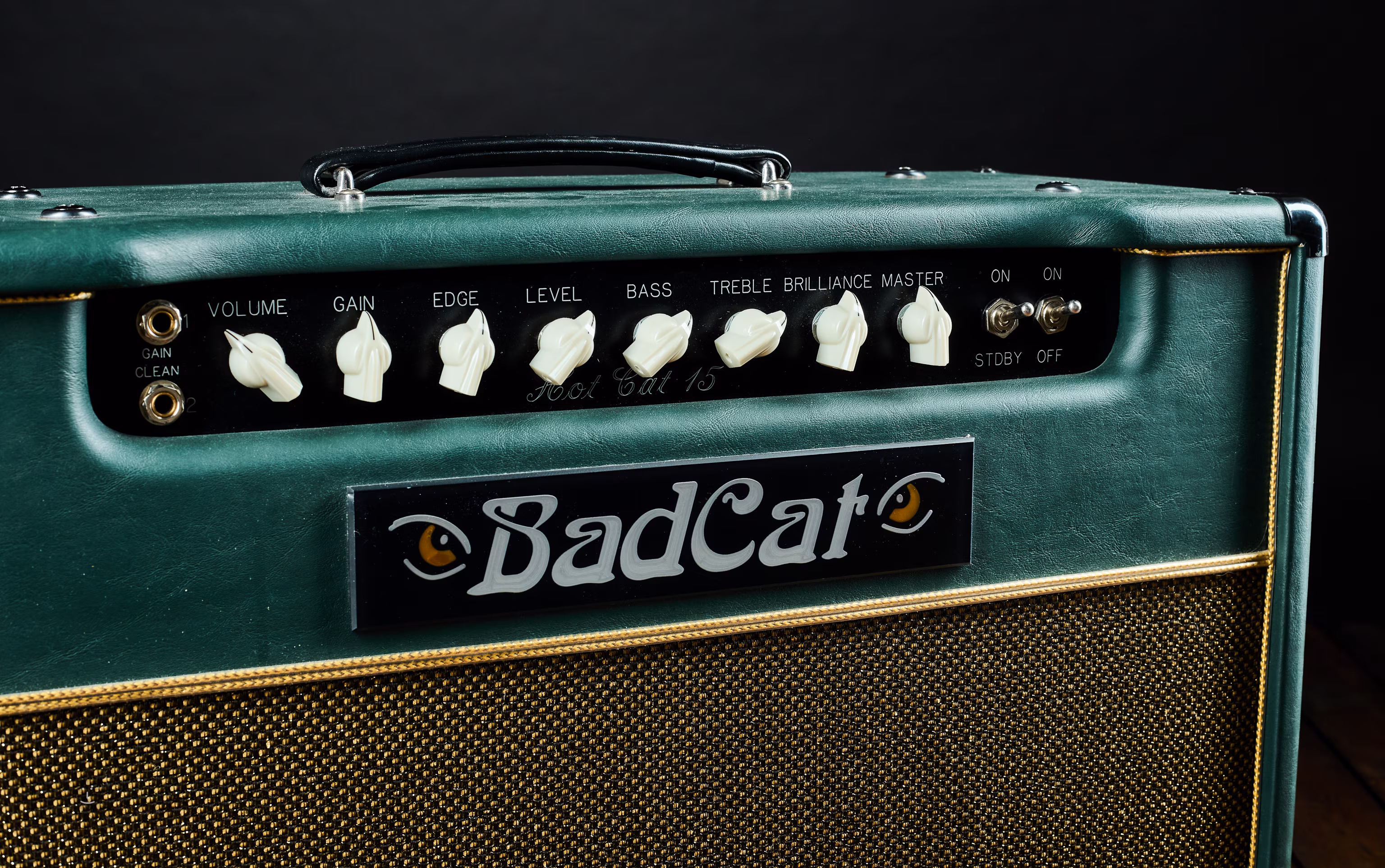 La machine offre 15W de puissance à lampe et 2 canaux (Gain, Clean) ; contrôles Volume, Gain, Edge, Level, Bass, Treble, Brillance et Master. Le combo peut être commuté à mi-puissance ou un haut-parleur supplémentaire peut être connecté.