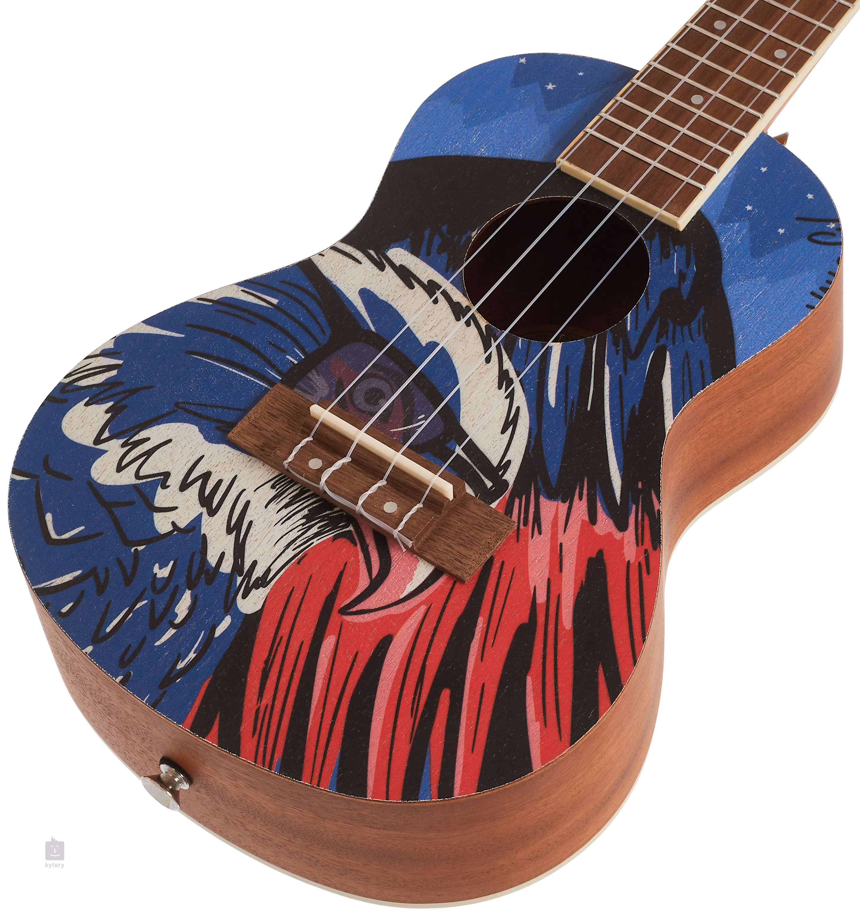 La ligne New Generation de Bamboo propose des ukulélés abordables de taille concert et soprano, ornés de motifs graphiques colorés. L'ukulélé de concert American Eagle est doté d'un corps en sapelli laminé, d'un manche en okoumé, d'une touche et d'un manche en noyer, et d'une attache de corde en os sur la frette zéro dans un mécanisme d'accordage ouvert de type guitare. L'instrument est livré dans un étui.
