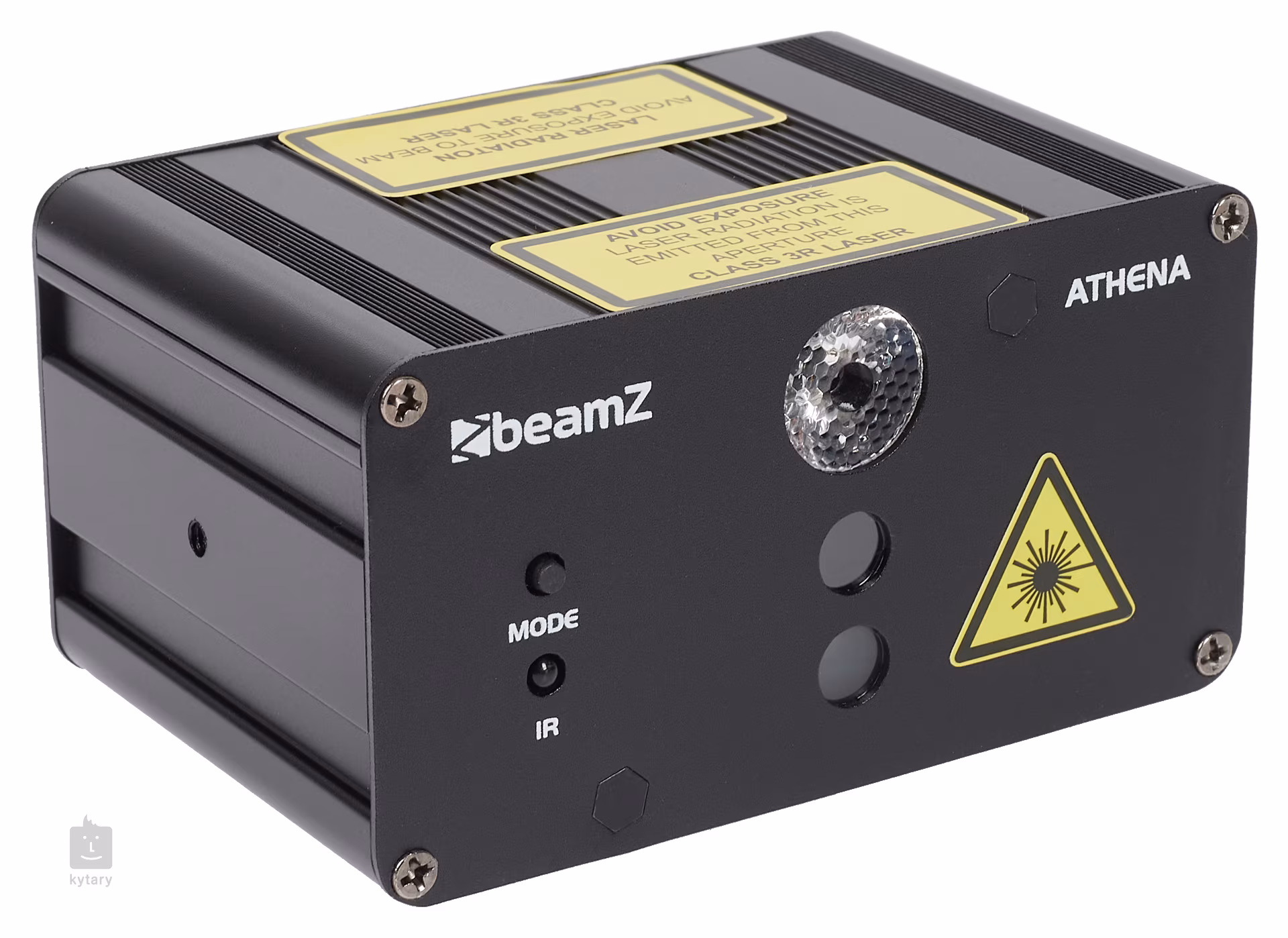 Le système laser Athena RG Gobo de BeamZ est un appareil très compact, alimenté par batterie, que vous pouvez emporter partout sans devoir compter sur la présence d'une prise de courant. Avec un poids de 0,35 kg, c'est l'appareil mobile idéal pour les fêtes à domicile, les petits clubs et les événements spéciaux. Il est équipé de deux lasers : un rouge de 100 mW et un vert de 50 mW. Il y a également un éclairage LED avec une palette de couleurs RVB et un pochoir de gobos pour créer une variété d'effets de couleur.