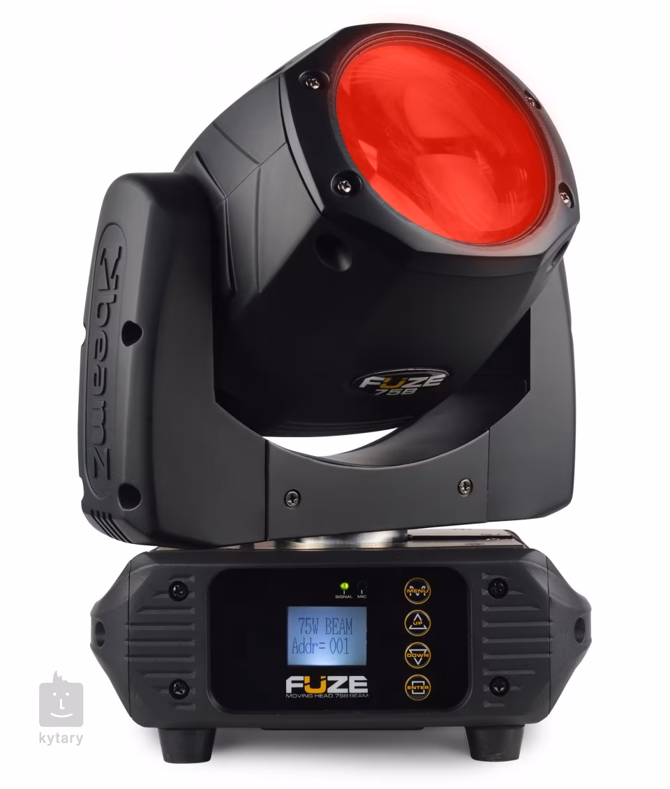 La tête pivotante Fuze 75B de BeamZ est un luminaire compact et abordable qui convient aux DJ itinérants, aux groupes, aux bars et aux petits clubs grâce à sa petite taille et à son poids léger (245 x 230 x 290 mm, 5,2 kg). Il est équipé d'une LED de 75W avec une lentille de fresnel qui dure longtemps et émet une lumière blanche de haute intensité avec un angle de rayonnement de 2°.