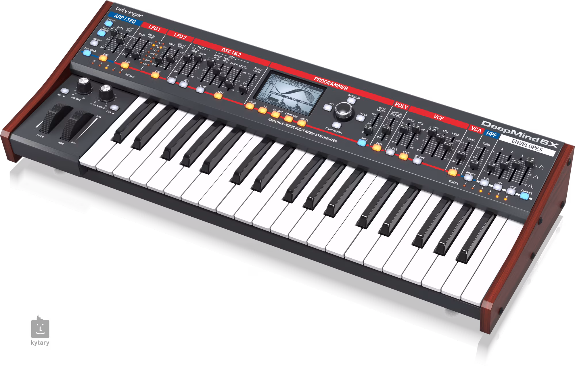 DeepMind 6X est un outil qui convient aussi bien au studio d'enregistrement qu'aux concerts, où il portera votre performance à un tout autre niveau. Avec une large gamme d'effets et de filtres, il devient un puits sans fond pour vos rêves et vos idées musicales. Et vous allez adorer son panneau de commande. Toutes les fonctions sont clairement organisées dans des sections codées par couleur, où vous pouvez régler tous les paramètres à l'aide des curseurs réactifs et des boutons rétroéclairés. L'onde sonore que vous réglez est ensuite affichée graphiquement sur le grand écran LCD situé au centre du panneau. Il y a aussi, bien sûr, un pitch bend, une molette de modulation et le contrôle Portamento, un peu moins standard. Ceux qui souhaitent encore plus de clarté seront ravis de pouvoir contrôler le synthé avec un appareil mobile externe - l'outil est compatible avec Windows et Mac OS, Android et iOS.