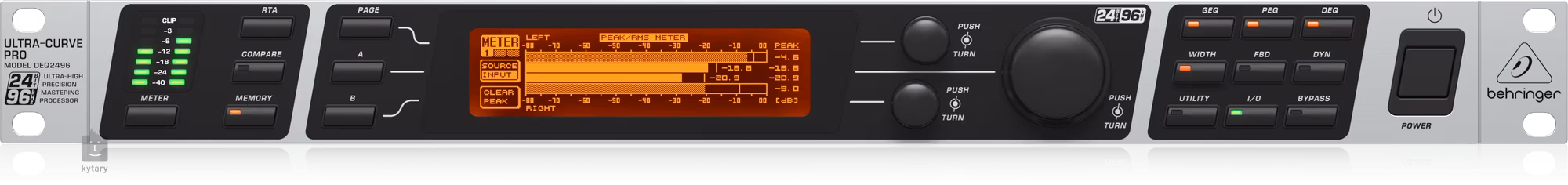 Il y a un analyseur FFT 61 bandes avec Auto EQ pour l'ajustement automatique du son de la pièce, un imageur stéréo pour la largeur et la symétrie du champ stéréo, un délai numérique avec compensation de température et un ensemble complet d'outils dynamiques (compresseur/expanseur, limiteur) avec des réglages détaillés. Le destructeur de larsen intégré avec mode d'apprentissage permet de détecter et d'éliminer rapidement le larsen en temps réel.