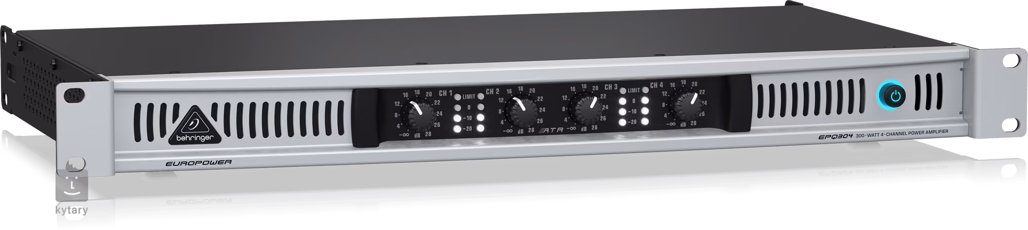 Le Behringer EPQ304 est un amplificateur léger à quatre canaux de classe D avec une puissance de sortie maximale de 300 W, des commandes simples sous la forme de commandes de volume séparées avec indication de puissance par LED, quatre entrées combinées XLR/jack 6,3 mm et des sorties speakon.