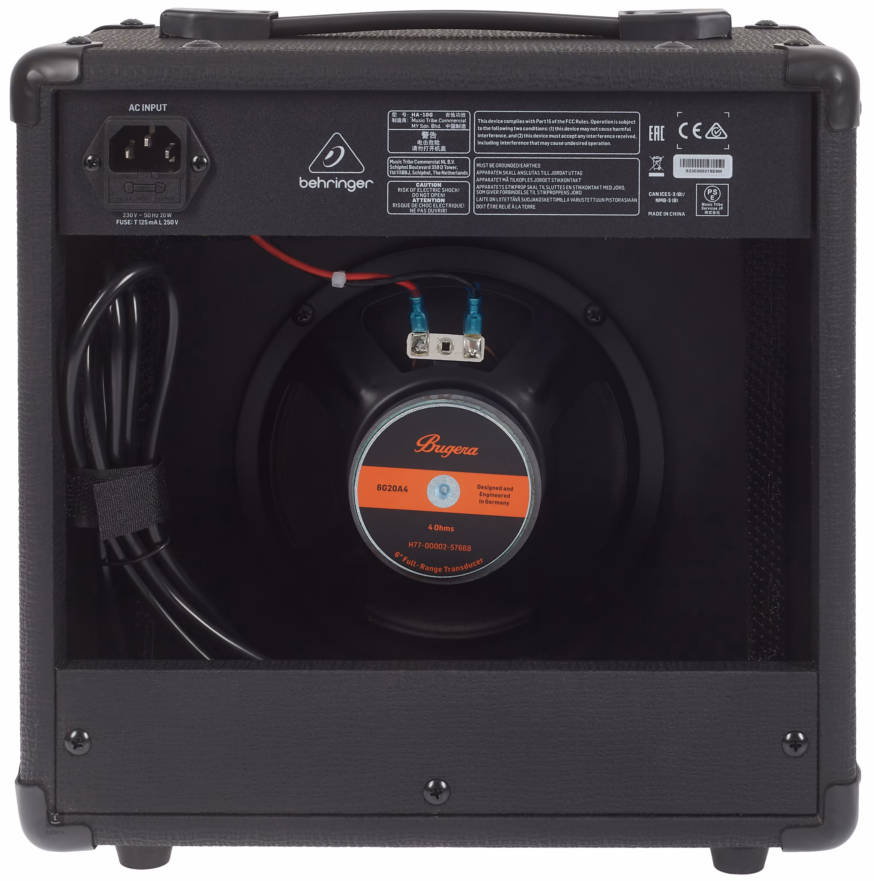 Le Behringer HA-10G est un combo guitare à transistors de 10 watts à deux canaux (clean, overdrive) qui vous servira d'aide à la pratique, pour développer vos talents de musicien, et d'instrument facile à transporter pour les événements plus intimes. En plus des deux canaux, il offre un égaliseur à trois bandes pour des réglages sonores plus détaillés, une sortie casque avec simulation de cabine pour une pratique ininterrompue même à des heures tardives (le haut-parleur interne est coupé lorsque le casque est connecté), et une entrée Aux In pour improviser et s'entraîner sur des pistes jouées à partir d'appareils externes.