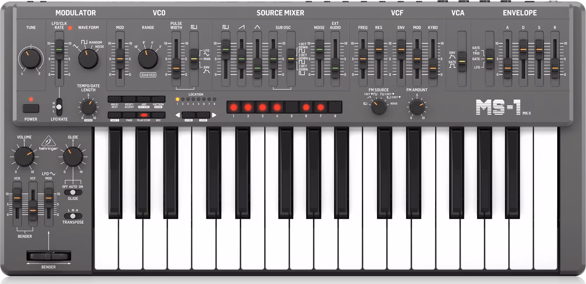 Le MS-1 MK II-GY est un hommage abordable au synthétiseur monophonique emblématique des années 80 et 90, avec toutes les caractéristiques de l'original, telles qu'un séquenceur à 32 pas et un arpégiateur.