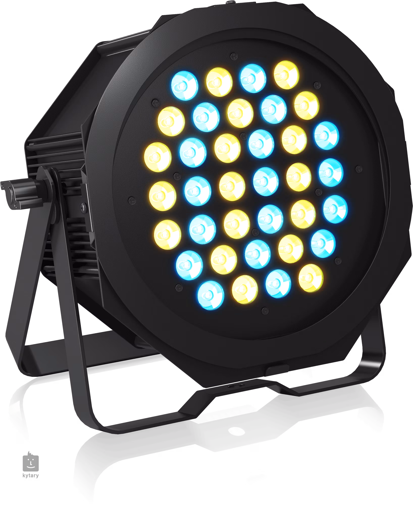 Le contrôle s'effectue via le protocole standard DMX512. Il existe également des programmes contrôlés par le son qui vous permettent de synchroniser la commutation des couleurs avec le rythme de la musique jouée, créant ainsi une synergie parfaite entre le son et la lumière. Le mode maître/esclave permet ensuite de synchroniser l'appareil avec d'autres projecteurs du même type. Un cordon d'alimentation est inclus.