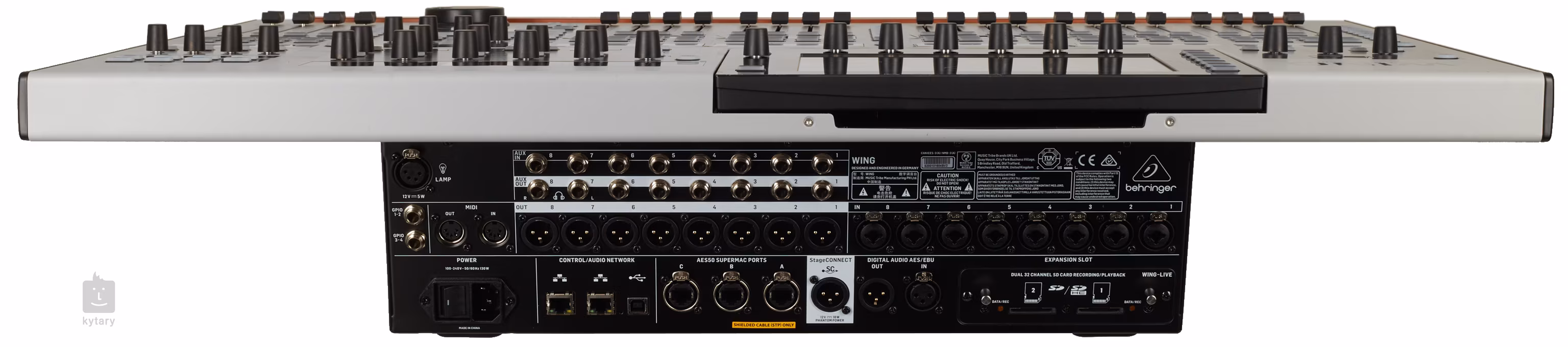 La Behringer Wing est une console de mixage numérique de 48 canaux avec 28 bus stéréo, 8 préamplis micro Midas PRO et 8 sorties Midas PRO, un écran tactile de 10,1 pouces et 24 faders motorisés de 100 mm.