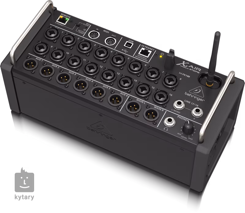 La Behringer X Air XR 18 est une console de mixage numérique avec contrôle par application iPad/tablette Android. Elle dispose de 18 canaux, de 16 préamplis MIDAS, de 12 bus, d'une carte son USB 18x18 ou d'un module Wi-Fi intégré.