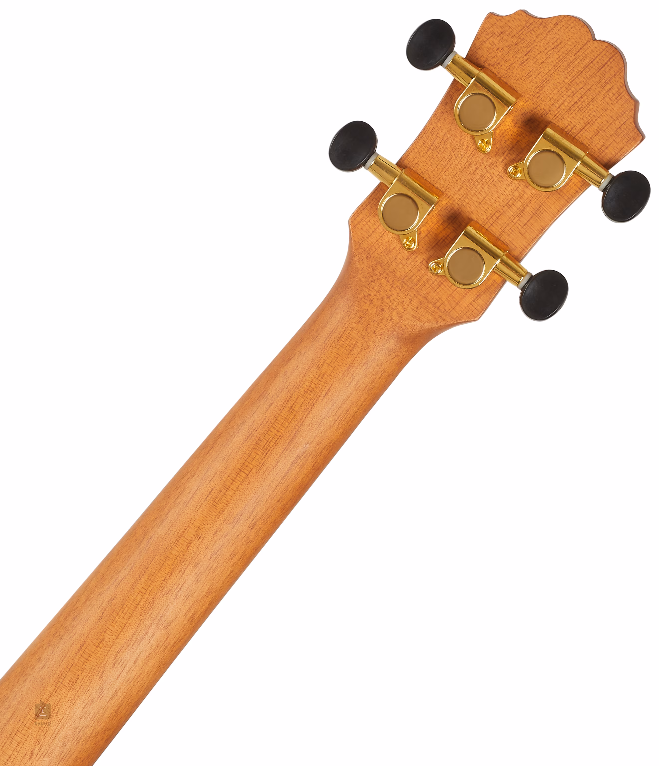 Le corps de l'ukulélé ténor Blond BLO-032-26 est en acajou - façade en bois massif, dos et éclisses en acajou stratifié. La touche en noyer noir est dotée de dix-huit frettes, et la touche de l'ukulélé est fabriquée dans le même matériau.
