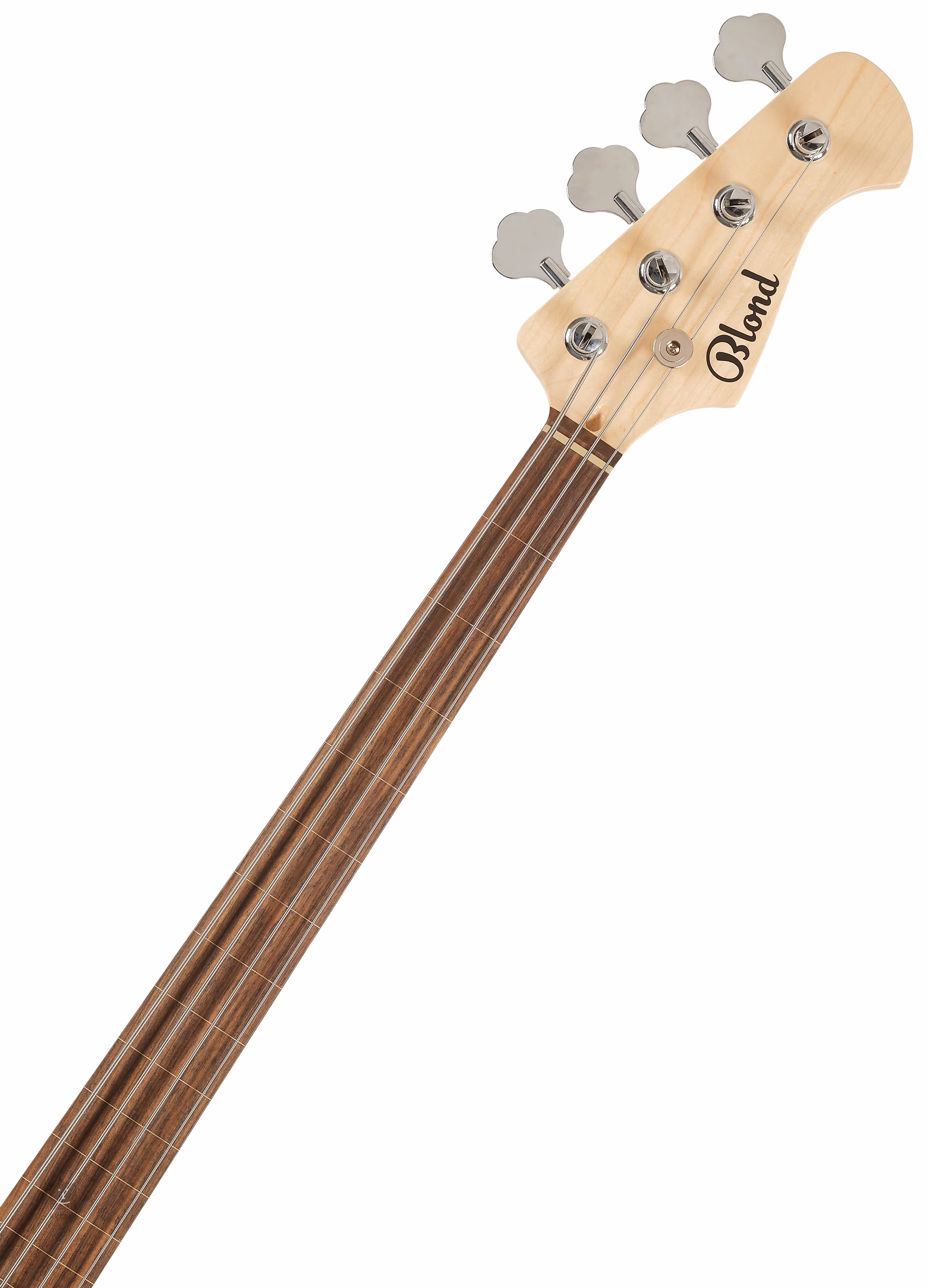 La basse électrique fretless JAB-2 FL de Blond offre un design classique et des possibilités sonores modernes. Le corps est en frêne américain, ce qui donne à l'instrument une sonorité riche et pleine, tandis que le manche en érable canadien boulonné avec bande en pau ferro assure la stabilité et le confort de jeu. Une touche en laurier avec des lignes de frettes marquées et des repères latéraux permet un guidage précis de la main, ce qui est essentiel pour les basses fretless.
