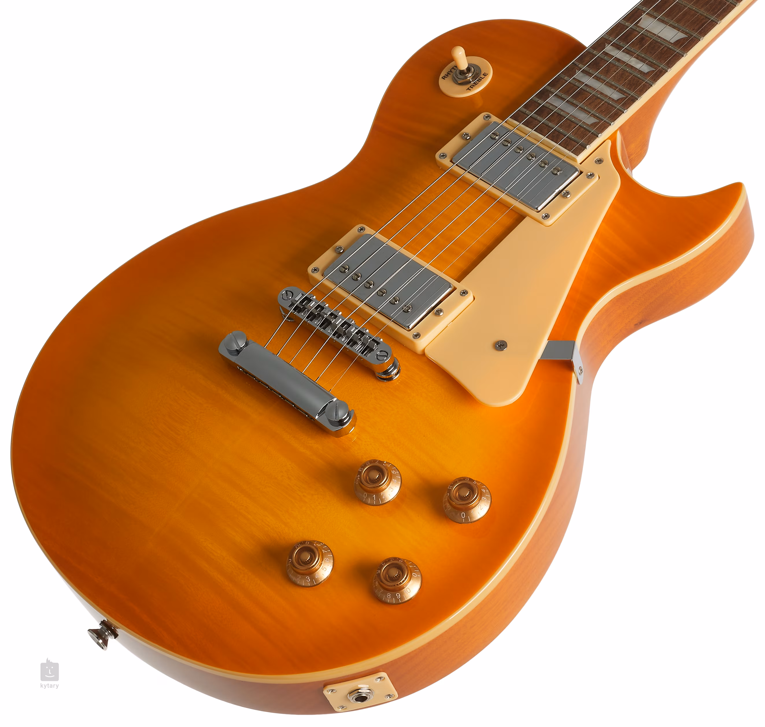 Le corps en acajou de la guitare est orné d'un placage fantaisie en érable flammé. Sur le manche en okoumé est collée une touche en bois de figuier munie de vingt-deux frettes. L'orientation de la touche est facilitée par des blocs de position.