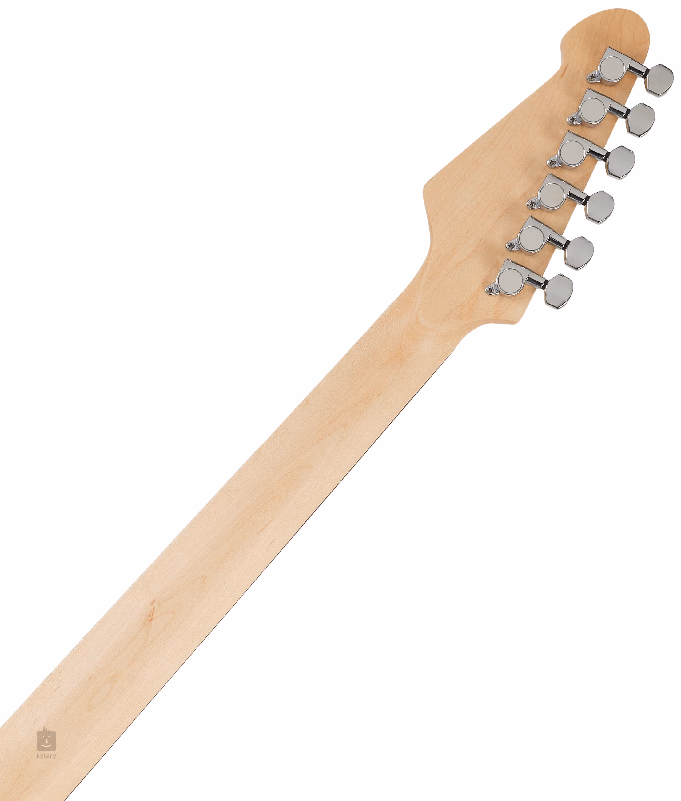 Les cordes sont maintenues par des mécaniques moulées sous pression et un trémolo synchronisé. La finition élégante est accentuée par un pickguard blanc et un accastillage chromé.