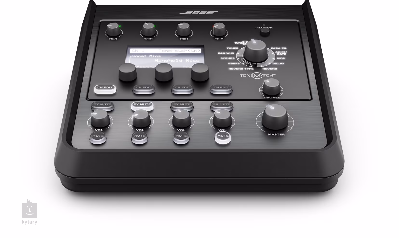 La BOSE T4S est une console de mixage a quatre canaux sans compromis et ultra-compacte, adaptée a la sonorisation de concerts en direct. Ses commandes claires et sa grande compatibilité avec les autres équipements BOSE vous donneront confiance sur scene et feront de lui votre partenaire fiable lors de concerts ou de spectacles.