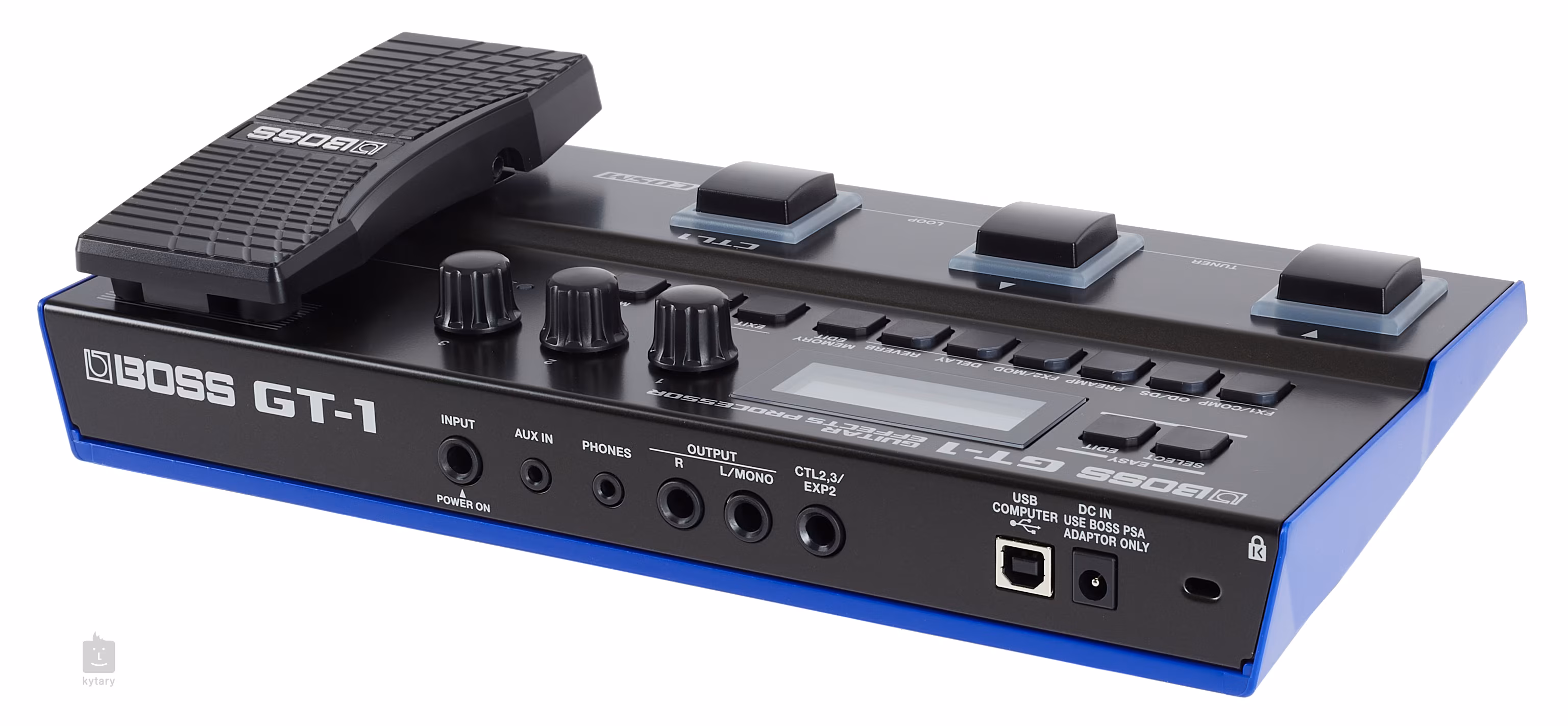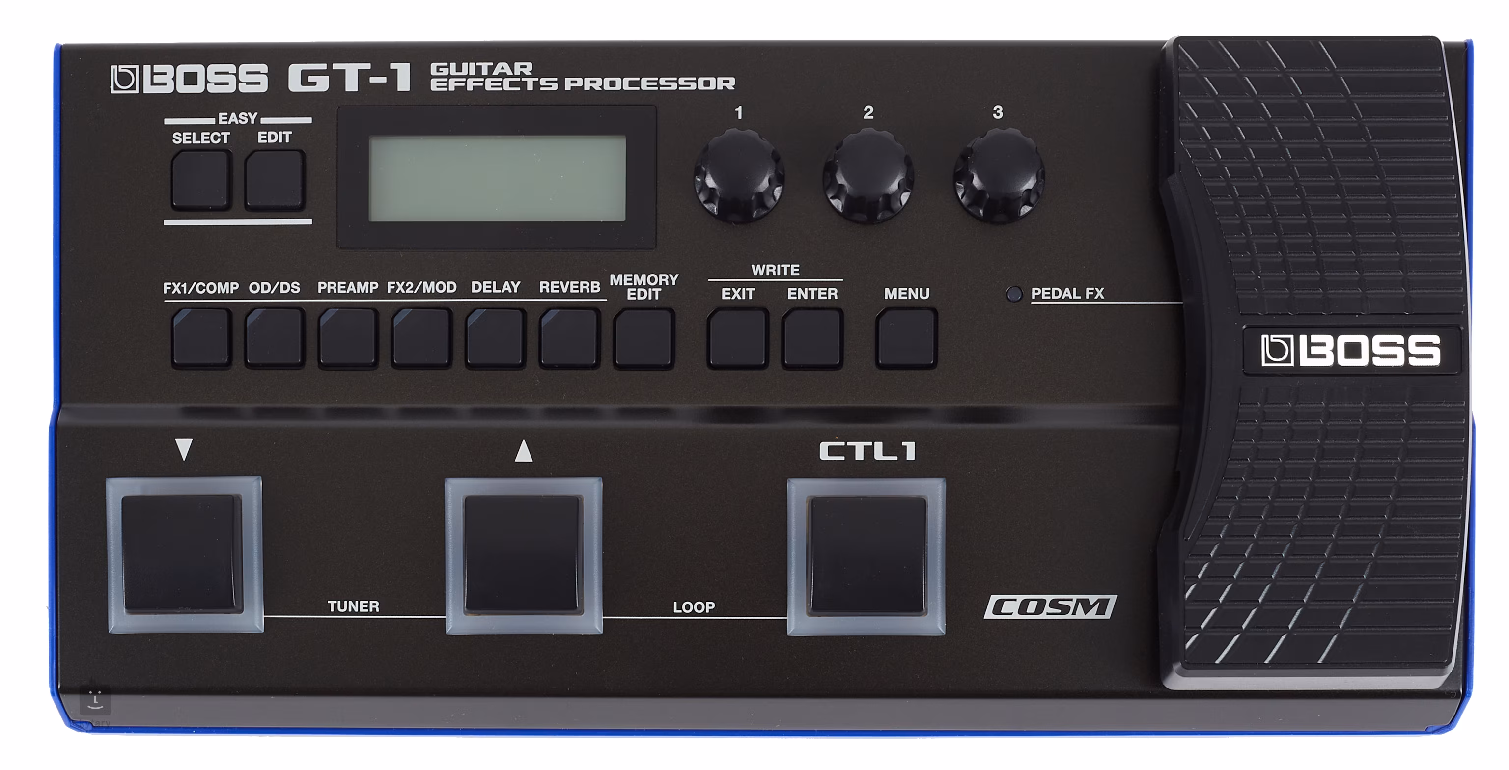 Les trois pédales du GT-1 sont conçues pour faciliter au maximum la sélection des patchs, l'accès à l'accordage, le contrôle du looper et d'autres fonctions. Le commutateur CTL1 peut être assigné au contrôle du tempo, à l'activation/désactivation des effets et à d'autres fonctions, tandis que la pédale d'expression et le commutateur toe peuvent être assignés au contrôle du volume, de la wah et de divers paramètres d'effet. Pour les joueurs les plus exigeants, une prise jack permet de connecter deux commutateurs au pied externes ou une pédale d'expression. Le GT-1 est compatible USB, ce qui permet aux utilisateurs d'enregistrer et d'amplifier des sons dans des logiciels DAW et avec BOSS Tone Central ou BOSS Tone Studio.
