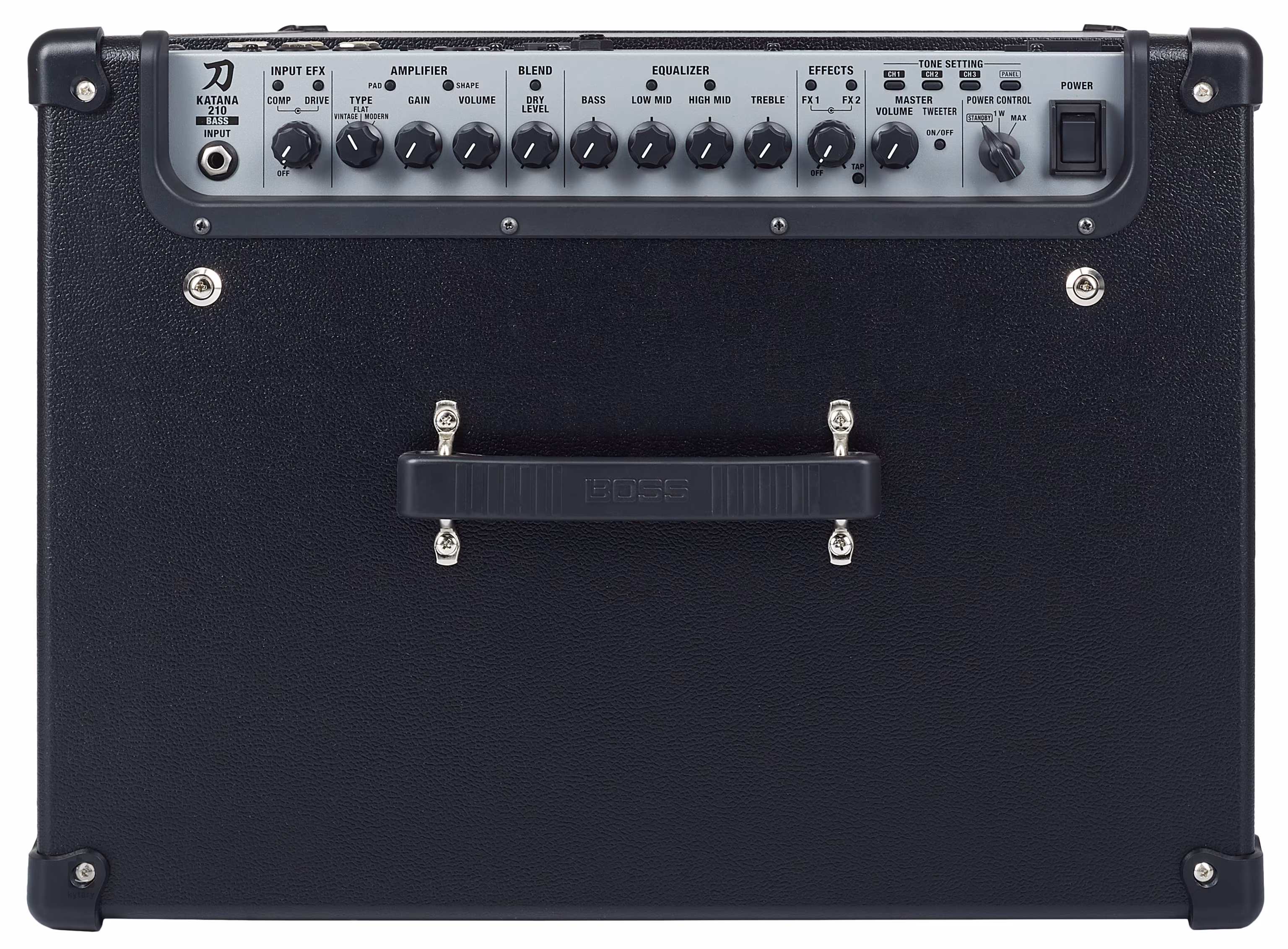 Comp, Drive, Amp Type, Gain, Volume, Blend, Bass, Low Mid, High Mid, Treble, FX1, FX2, Master, Tweeter, Power Control
