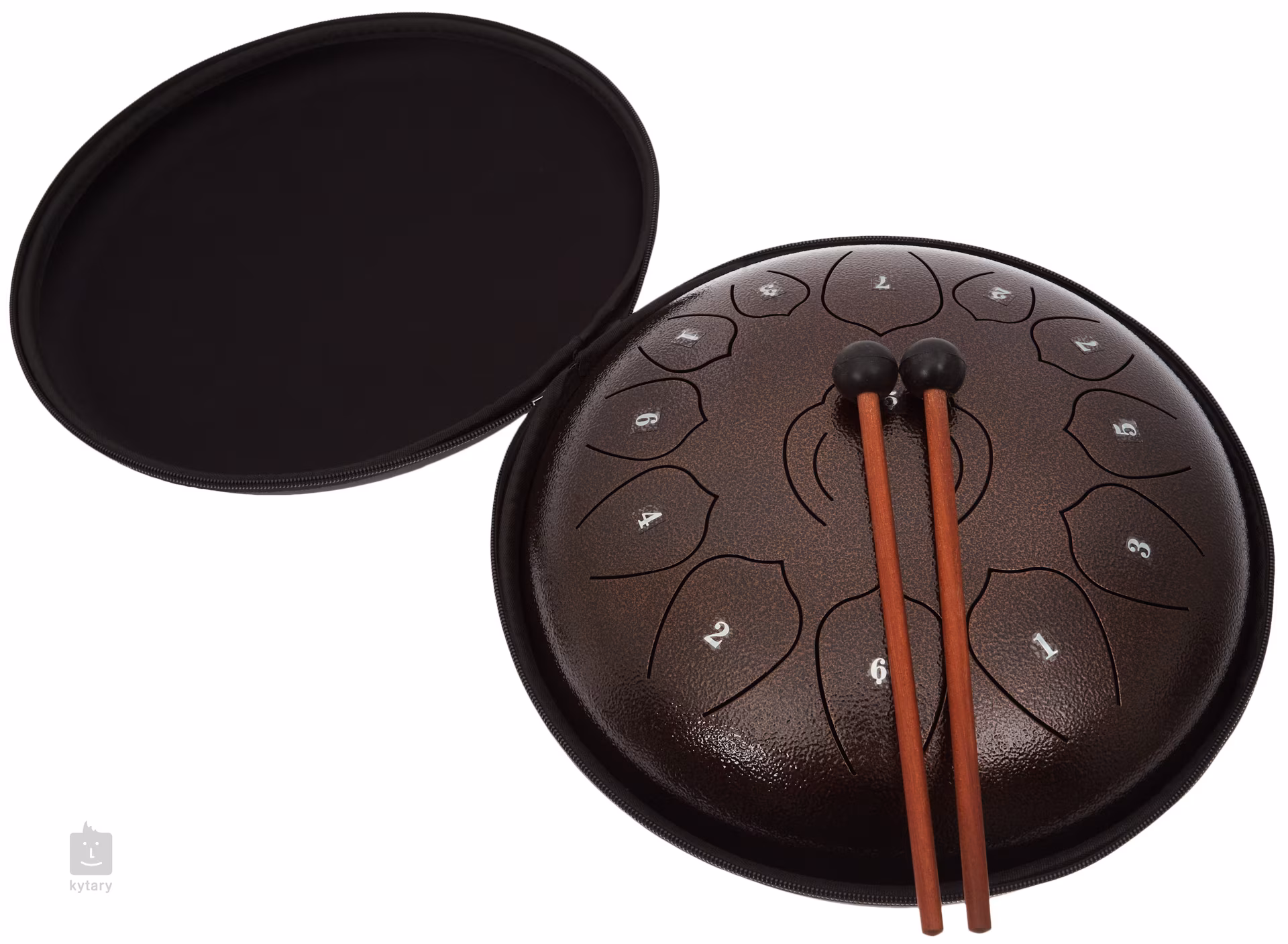 Ce tambour a languette est fabriqué en acier au carbone, qui est spécialement façonné et dans lequel sont taillées des anches de conception précise. Lorsque vous frappez la mailloche ou votre main, l'ensemble du "tambour" résonne et, grâce a sa construction, il produit un son tres harmonieux, rond et doux. Il est donc idéal pour le yoga, la relaxation ou la méditation, par exemple. Mais il peut également etre utilisé en tant que joueur solo ou dans un groupe. Grâce a son accordage naturel, il peut également etre joué sans aucune connaissance du solfege, ce qui permet d'utiliser l'instrument, par exemple, dans l'enseignement. Outre les tambours a languette proprement dits, l'emballage comprend également une paire de maillets, un porte-maillets, quatre anneaux pour un jeu plus fort avec les doigts, des autocollants pour faciliter la discrimination des sons et un étui de protection.