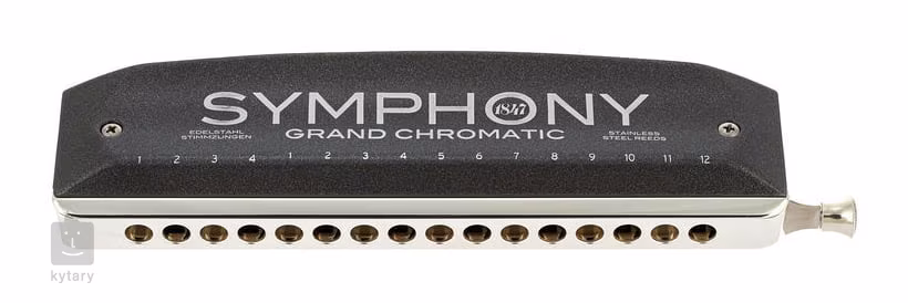 Le Seydel Symphony Grand Chromatic est un modele professionnel d'orgue a bouche chromatique avec seize canaux et une gamme de quatre octaves. Il offre un son plein et fort et des micros en acier inoxydable a réponse rapide qui sont durables et conservent leur accord meme en cas de jeu intense. Le corps noir de l'instrument est fabriqué en aluminium anodisé. L'harmonica comporte également des couvercles en aluminium moulé, des plaques en pakfong (argent allemand), une conception innovante de la coulisse avec des trous élargis pour un son plein et fort, des trous arrondis dans l'embouchure argentée pour un confort de jeu et une circulation d'air idéale, et soixante-quatre voicings en acier inoxydable.