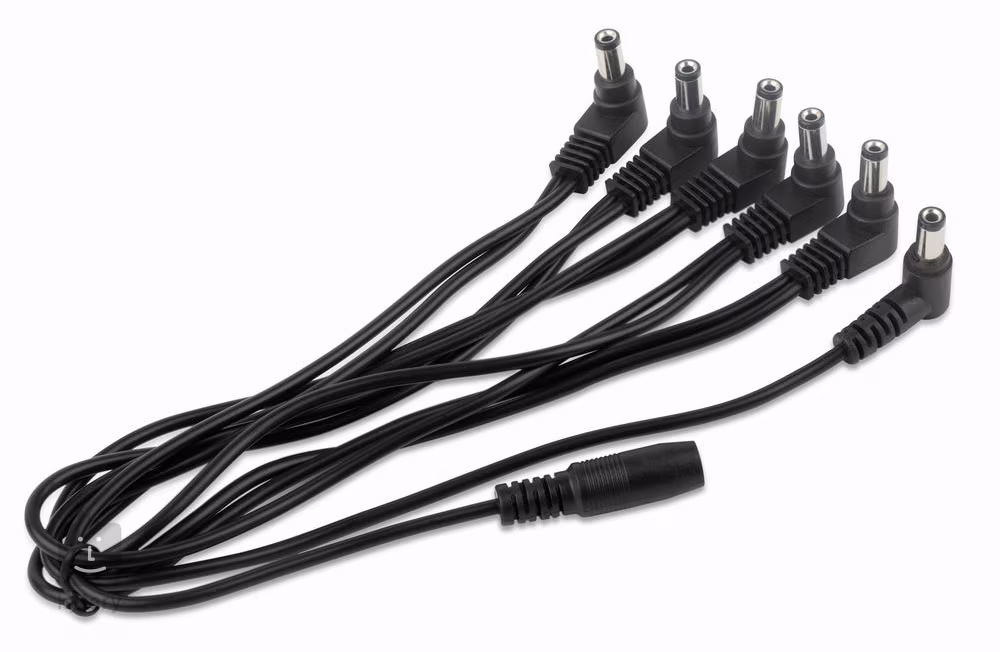 Vous avez besoin de brancher plusieurs effets en même temps et vous voulez gagner de la place ? Cette guirlande d'alimentation de Caline vous permet de répartir la tension entre six effets de guitare, vous évitant ainsi de vous emmêler dans un réseau interminable de câbles et d'adaptateurs.