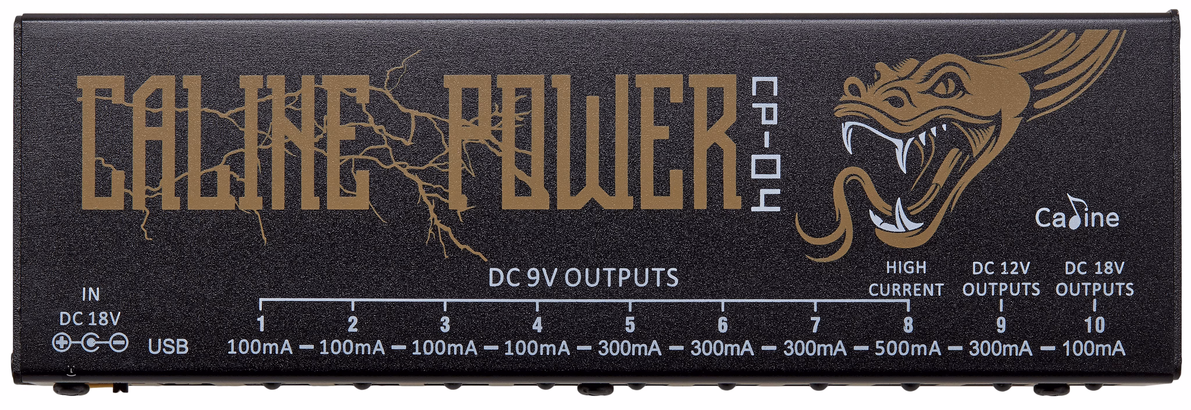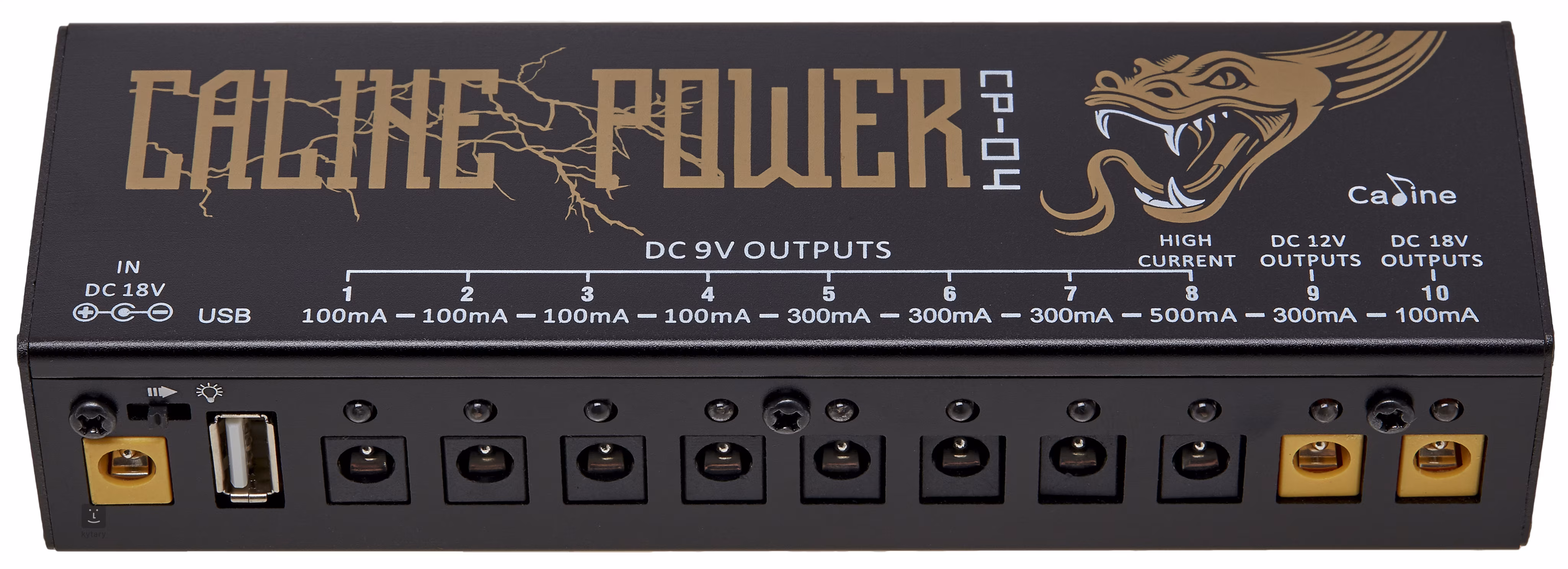 Le multiadaptateur CP-04 de la marque chinoise Caline offre un total de huit sorties pour alimenter vos effets de guitare - huit sorties 9V (4x 100 mA, 3x 300 mA et 1x 500 mA), une 12V (300 mA) et une 18V (100 mA). Il dispose également d'un port USB pratique pour recharger votre téléphone ou d'autres appareils.