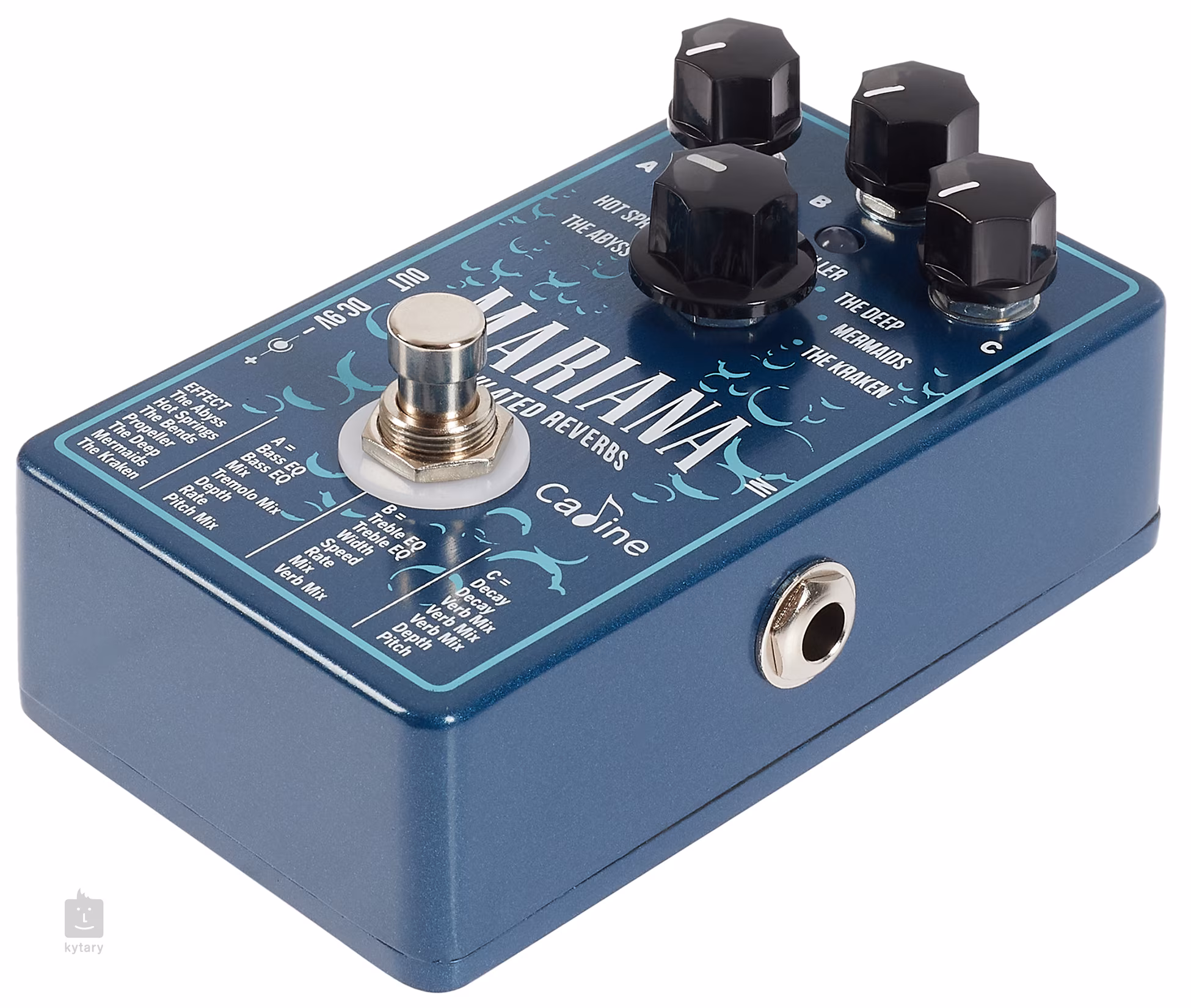 L'effet de guitare Mariana Modulated Reverbs ravira les amateurs de textures sonores riches et complexes. Elle offre sept formes différentes de réverbération modulée, avec lesquelles vous pouvez plonger dans les profondeurs sonores de la fantaisie musicale. Les fonctions des trois commandes du boîtier changent en fonction du type d'effet sélectionné, et la liste des fonctions est imprimée sur le châssis de la pédale pour une orientation plus rapide.