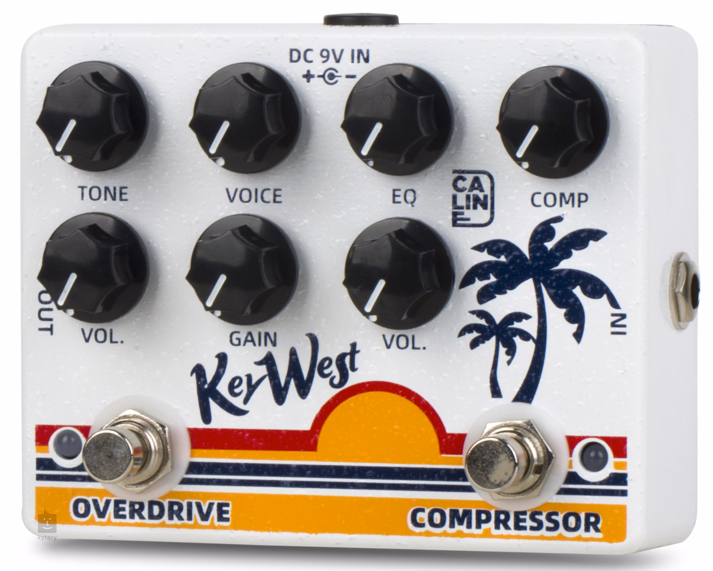 La pédale d'effet Caline Key West combine un compresseur et une pédale d'overdrive transparente à faible gain dans un seul châssis. Le compresseur vous aide à modeler le son de votre guitare selon vos préférences. Pour ce faire, les commandes du boîtier déterminent l'intensité du signal de sortie, le caractère/couleur du son et le niveau de compression/dynamique. Une overdrive transparente activable séparément et dotée d'un égaliseur à deux bandes permet d'améliorer le son de votre guitare.
