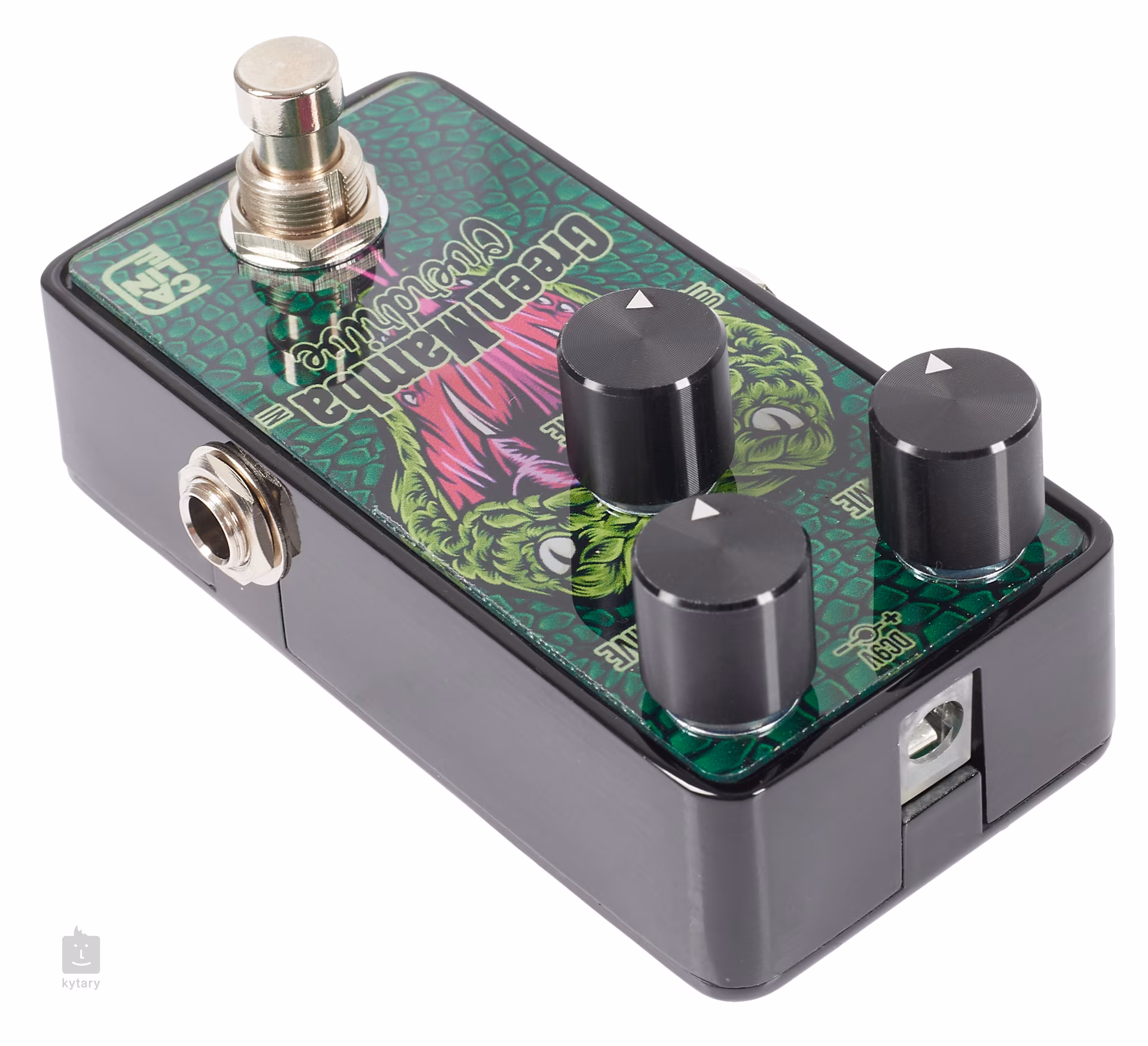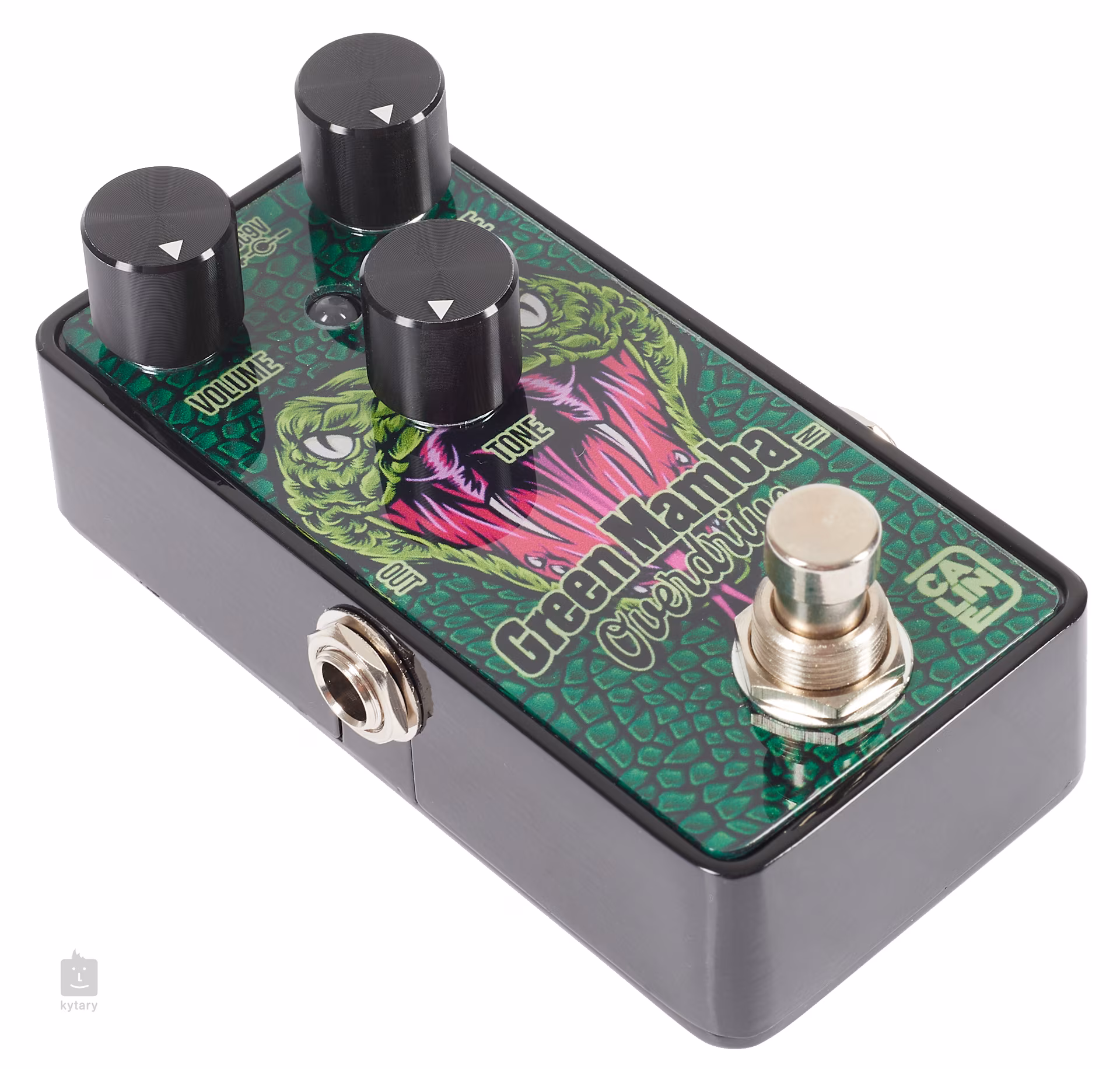 Green Mamba Drive est une pédale d'effet overdrive compacte de la série G de Caline. Similaire aux pédales TS bien connues, elle offre une bonne quantité de gain pour des solos de guitare et des riffs de rock bien juteux, et du punch dans les médiums, de sorte qu'il est facile de s'intégrer au mixage du groupe. Les réglages individuels des boutons déterminent le volume de sortie, la quantité de gain/distorsion et le caractère de la tonalité/de l'égalisation. La pédale d'effet est câblée en true-bypass, ce qui signifie qu'elle n'affecte pas le signal de passage lorsqu'elle est éteinte. L'alimentation est assurée par un adaptateur 9V (non fourni). La consommation électrique du boîtier correspond à 50mA.