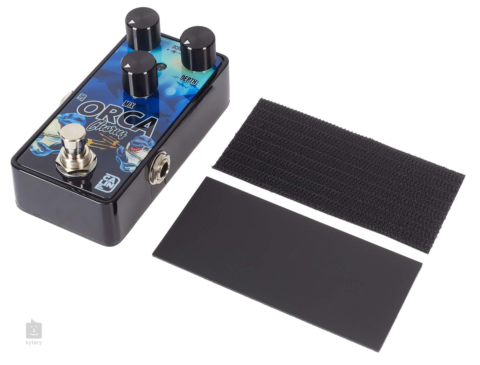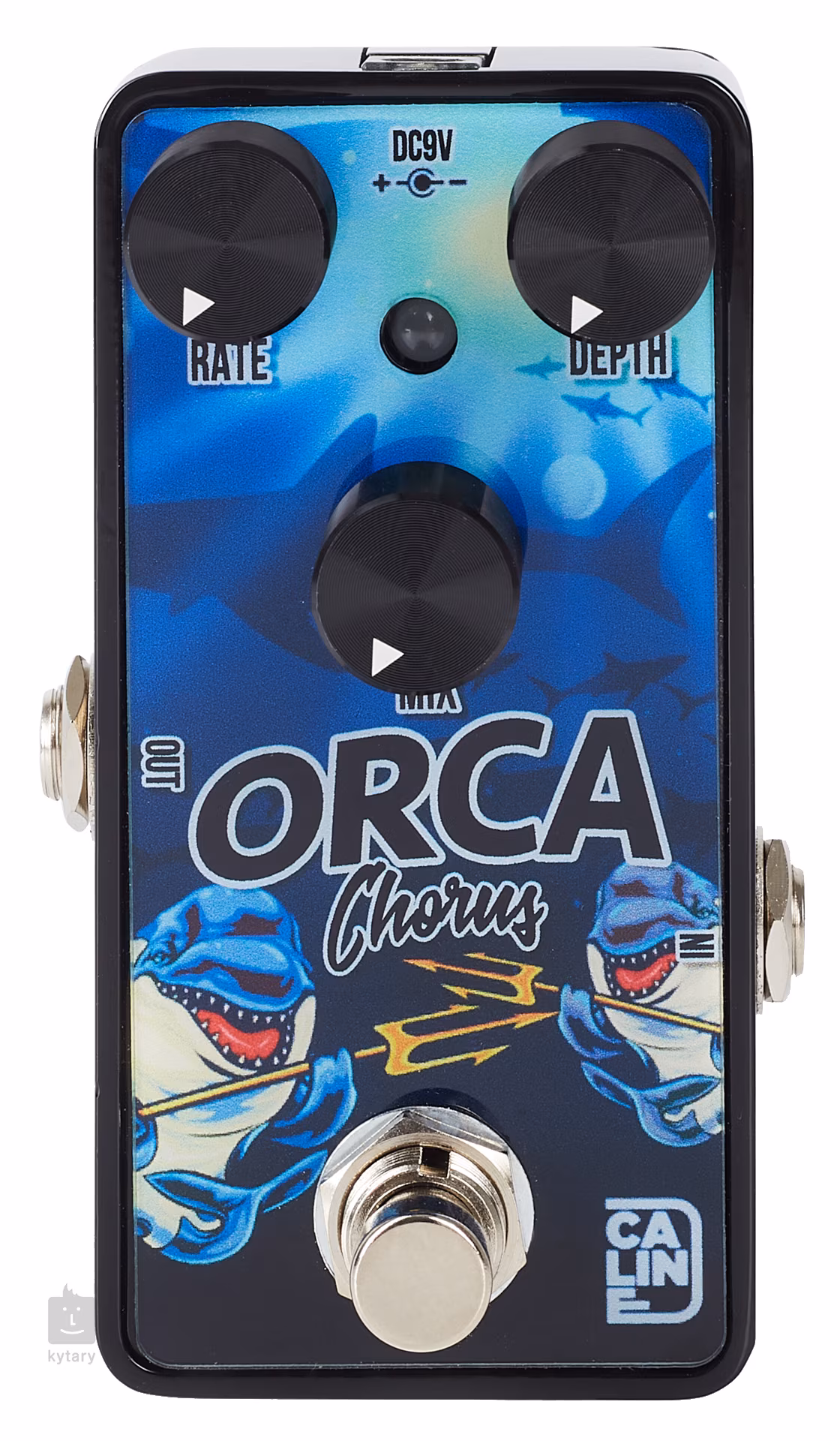 ORCA Chorus est une pédale de chorus compacte de la série G de Caline. Elle offre les sons/modulations d'effets des boîtes de chorus des années 80, c'est-à-dire des sons chauds et complets évoquant plusieurs guitares superposées, ainsi que des modulations plus prononcées sous forme de désaccordage mineur ou majeur, où le ton acquiert un éclat plus métallique et le son devient plus ondulant au sens figuré (ce qu'on appelle l'effet de mal de mer). Les réglages des commandes déterminent la vitesse et l'intensité de la modulation de l'effet et le rapport sec/humide du signal. La pédale d'effet est câblée en true-bypass, c'est-à-dire qu'elle n'affecte pas le signal de passage lorsqu'elle est éteinte. Un adaptateur 9V (non inclus) est utilisé pour l'alimentation. La consommation électrique du boîtier correspond à 100mA.