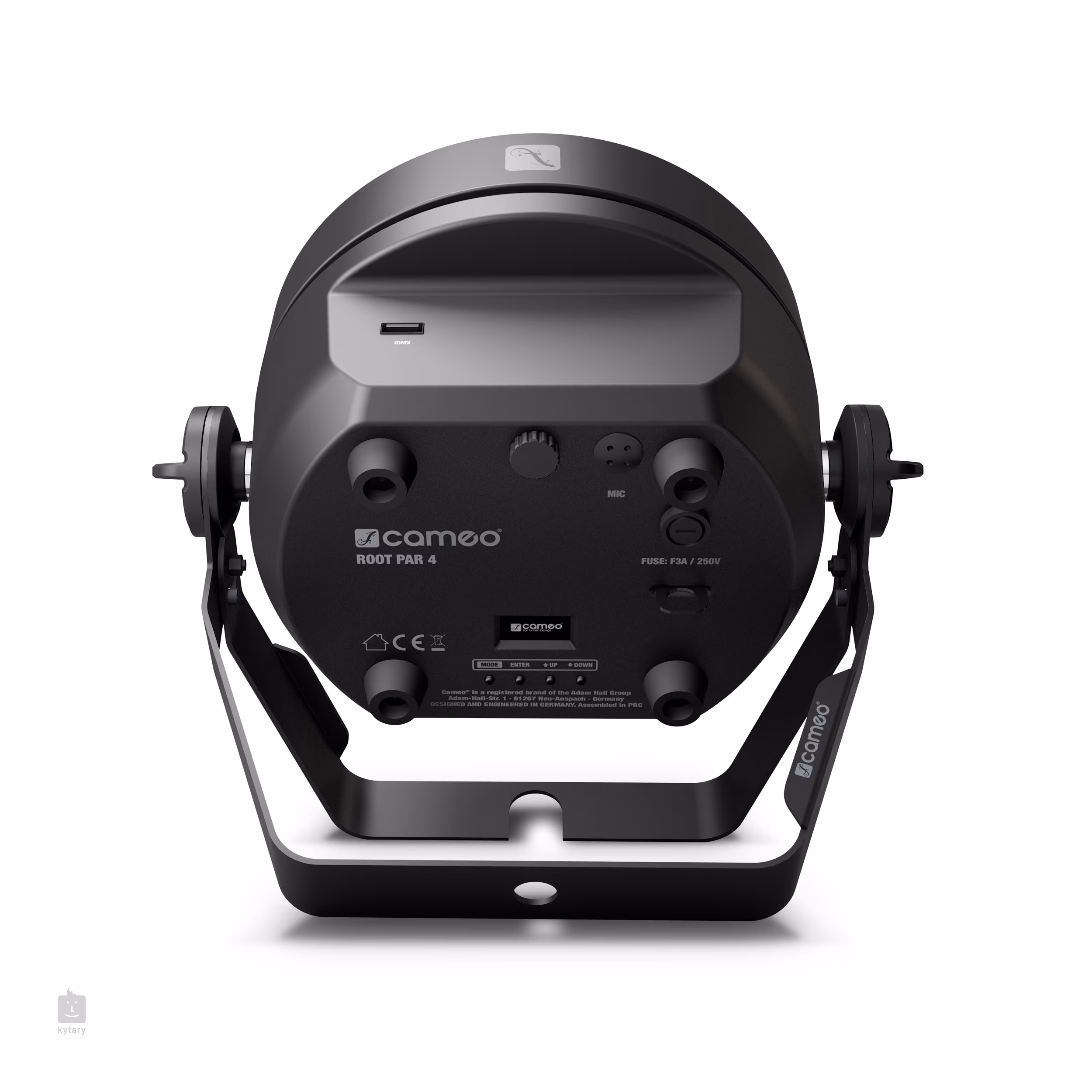 Le projecteur Root Par 4 BK LED PAR de Cameo est un projecteur compact et abordable qui intègre des fonctions sophistiquées que l'on ne trouve habituellement que sur des équipements beaucoup plus coûteux. Sa source lumineuse se compose de sept LED RGBW de 4 W, qui offrent une multitude d'options de mélange de couleurs et permettent de créer une lumière blanche de différentes nuances. Le grand intérêt de ce luminaire est sa technologie brevetée EZchase®, qui vous permet de relier plusieurs appareils entre eux pour créer une variété d'effets de poursuite et de transitions de couleurs fluides sans avoir besoin d'une longue programmation. Un effet stroboscopique est également disponible.