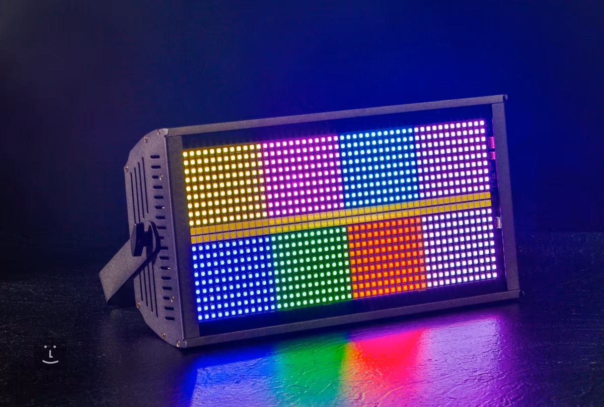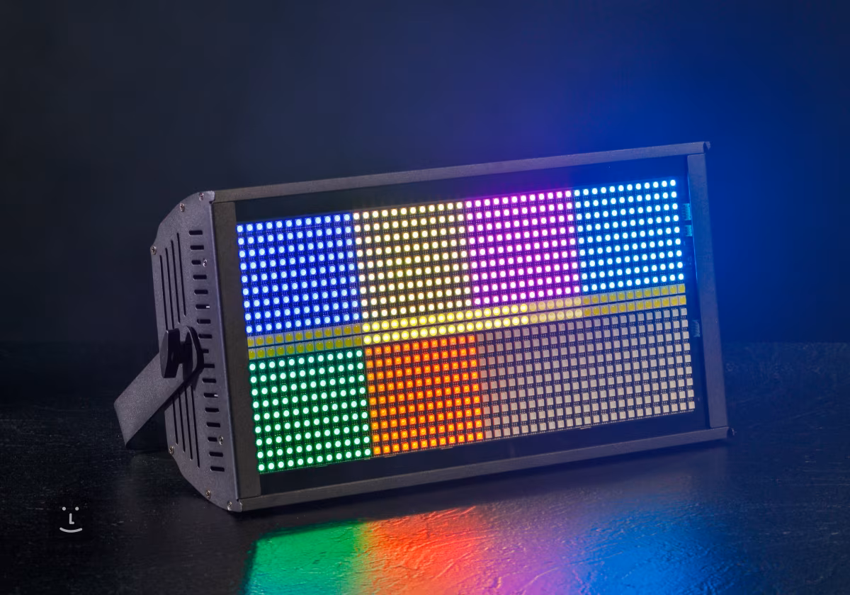 Le Lightblaster L960 de CentoLight est un projecteur LED unique conçu principalement pour l'éclairage wash et l'effet stroboscopique. Il est équipé de 960 LED - 96 blanches et 864 couleurs RVB - et divisé en 8 + 8 zones indépendantes que l'utilisateur peut configurer à sa guise, chacune pouvant être contrôlée individuellement ou à l'aide de programmes prédéfinis.