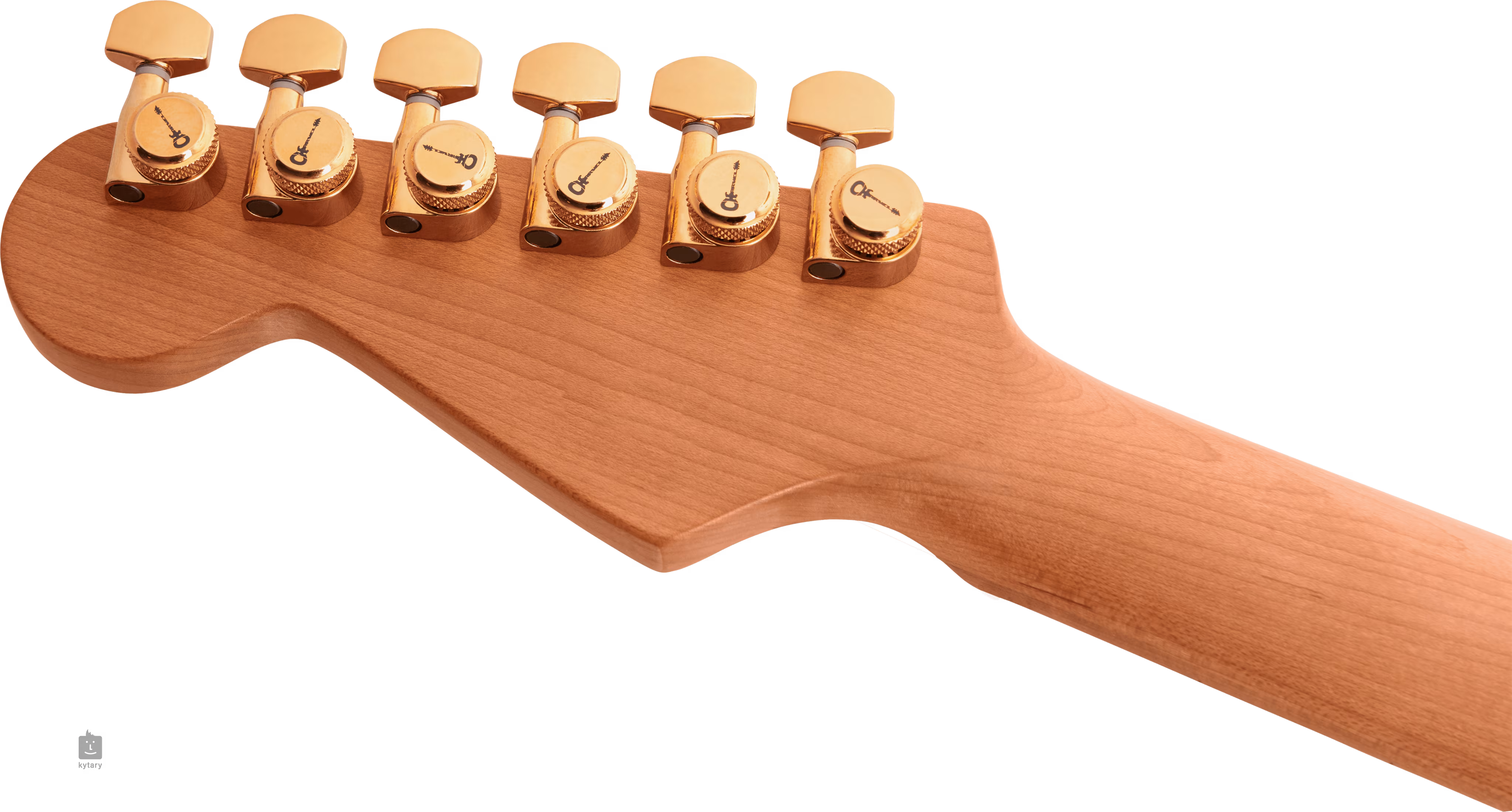 L'orientation sur la touche est facilitée par des points de positionnement en imitation nacre et des points luminescents sur le côté, qui vous donnent une vue d'ensemble de l'endroit où vous vous trouvez, même dans les clubs sombres ou en jouant de nuit. Les cordes sont montées sur la frette zéro de la Graph Tech TUSQ XL dans le mécanisme de verrouillage moulé sous pression de la société et le trémolo Gotoh Custom 510.
