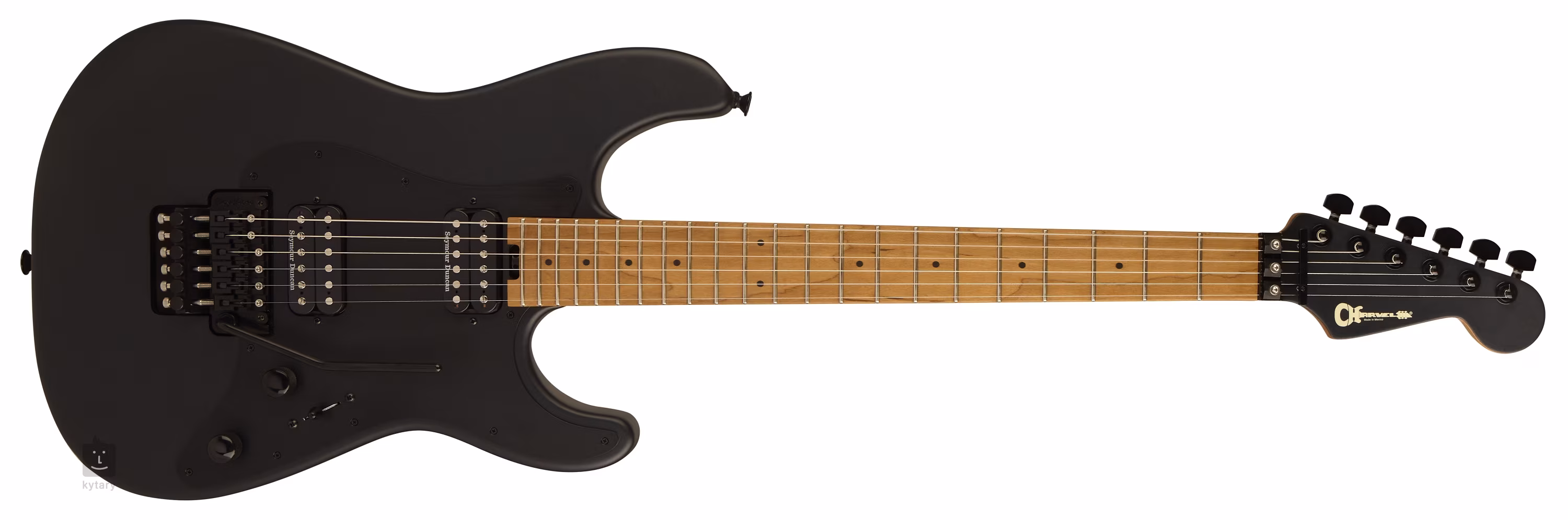Les cordes sont montées dans les mécaniques moulées sous pression de l'entreprise et dans le trémolo Floyd Rose 1500 Series, que vous pouvez utiliser pour ajouter des effets sonores impressionnants à votre jeu. Les verrous sur la frette zéro garantissent que la guitare reste accordée, même en cas d'utilisation fréquente du levier de trémolo. La finition élégante est accentuée par un accastillage noir et un pickguard à la forme spécifique des guitares Charvel "So-Cal".