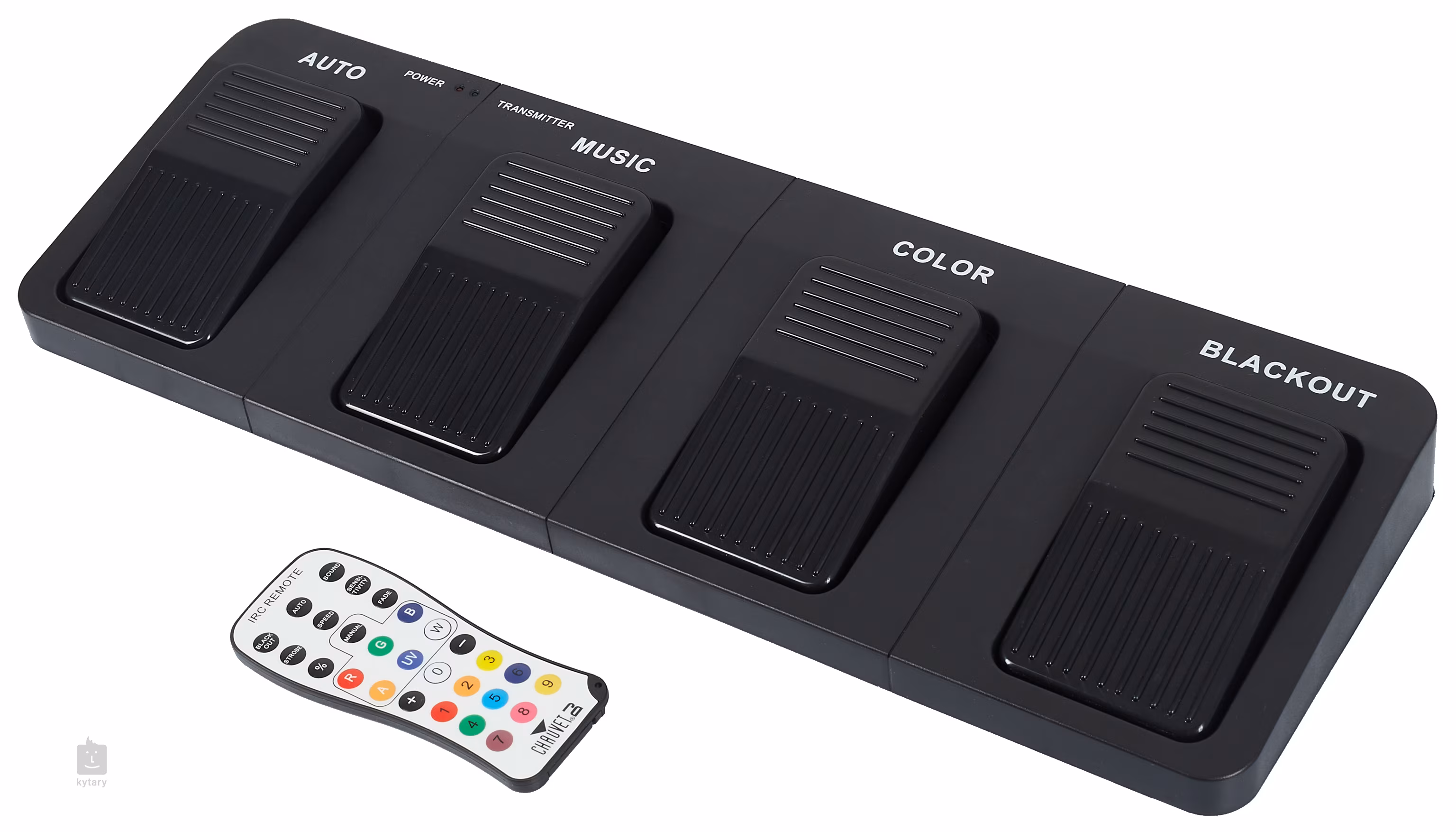 Le contrôle est assuré par le protocole DMX standard ou par des programmes automatiques ou contrôlés par le son. Le mode maître/esclave et le contrôle à distance via la télécommande IR incluse ou une pédale externe sont également disponibles. Un panneau de contrôle clair avec écran et boutons est disponible pour une configuration manuelle. L'appareil est équipé de connecteurs DMX à 3 broches et de connecteurs d'alimentation IEC.