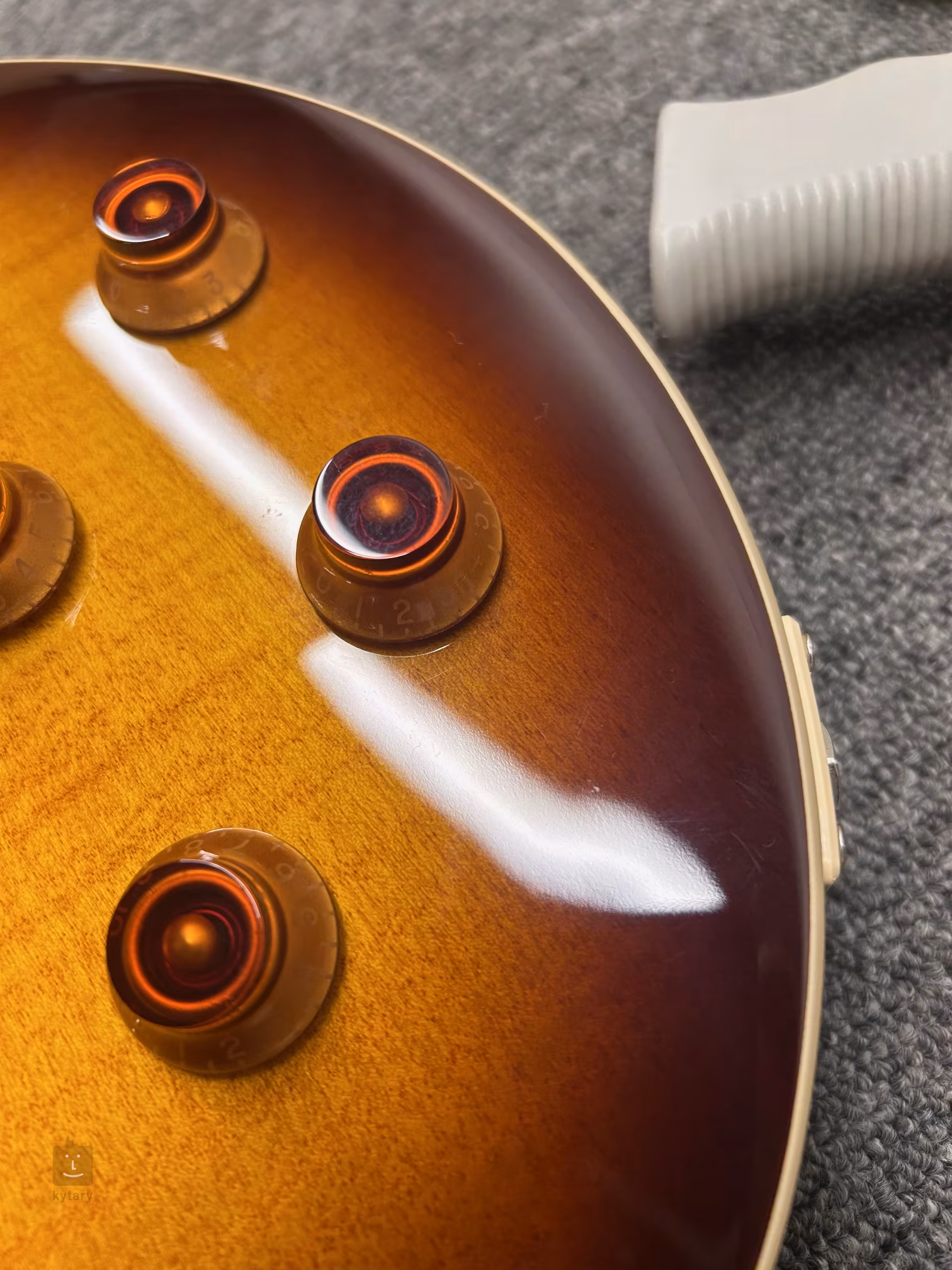 Le corps en acajou de la guitare est orné d'un spectaculaire placage d'érable plaqué. Au manche en acajou collé est accolée une touche en jatoba, dit cerisier brésilien, équipée de vingt-deux frettes. Des blocs de positionnement en nacre d'imitation facilitent l'orientation sur sa surface.